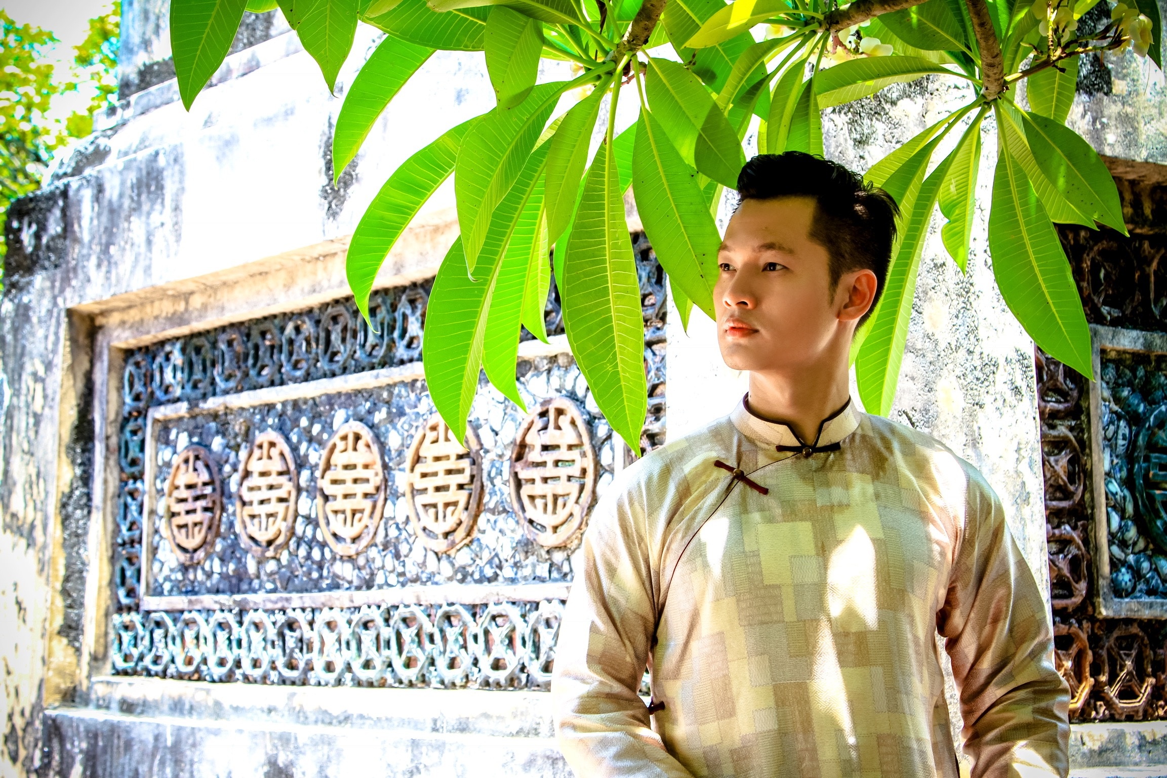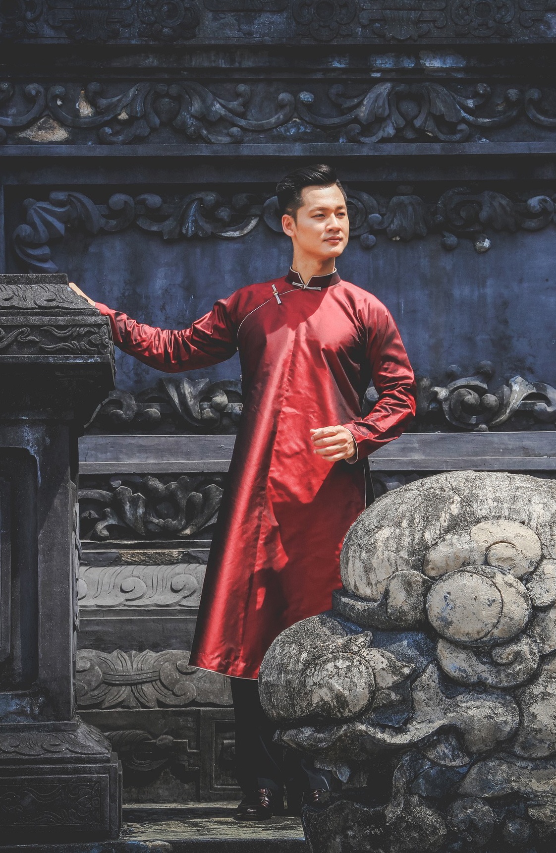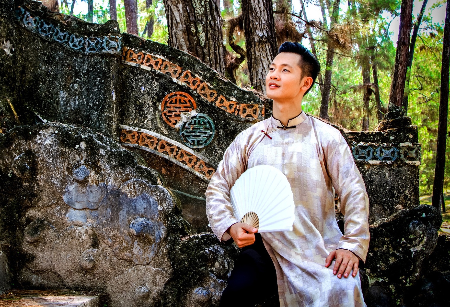 | Nam ca sĩ gốc An Giang chọn thiết kế áo dài cổ truyền để giới thiệu đến độc giả hình ảnh hoài cổ, phù hợp với định hướng phong cách của anh. |