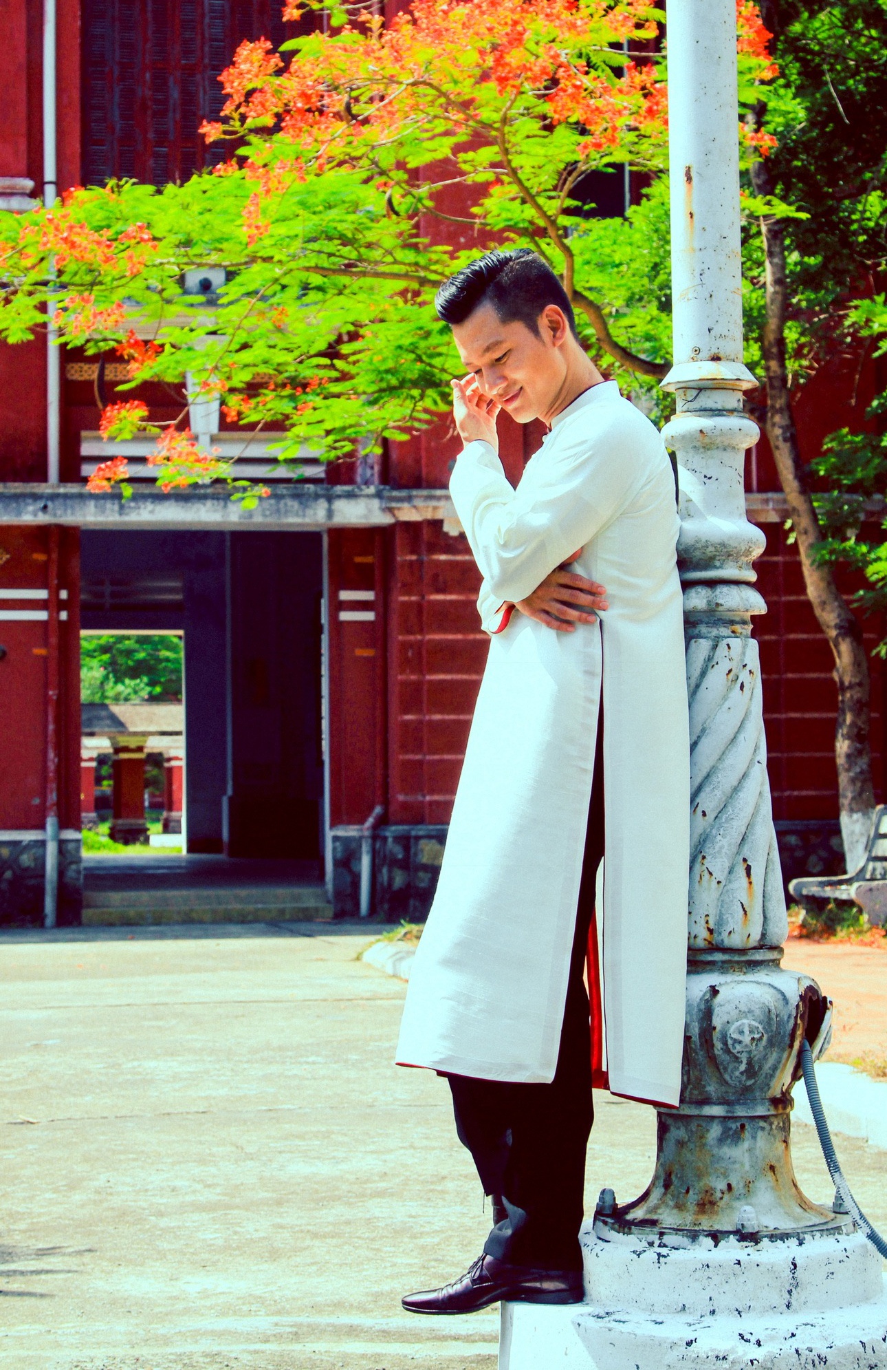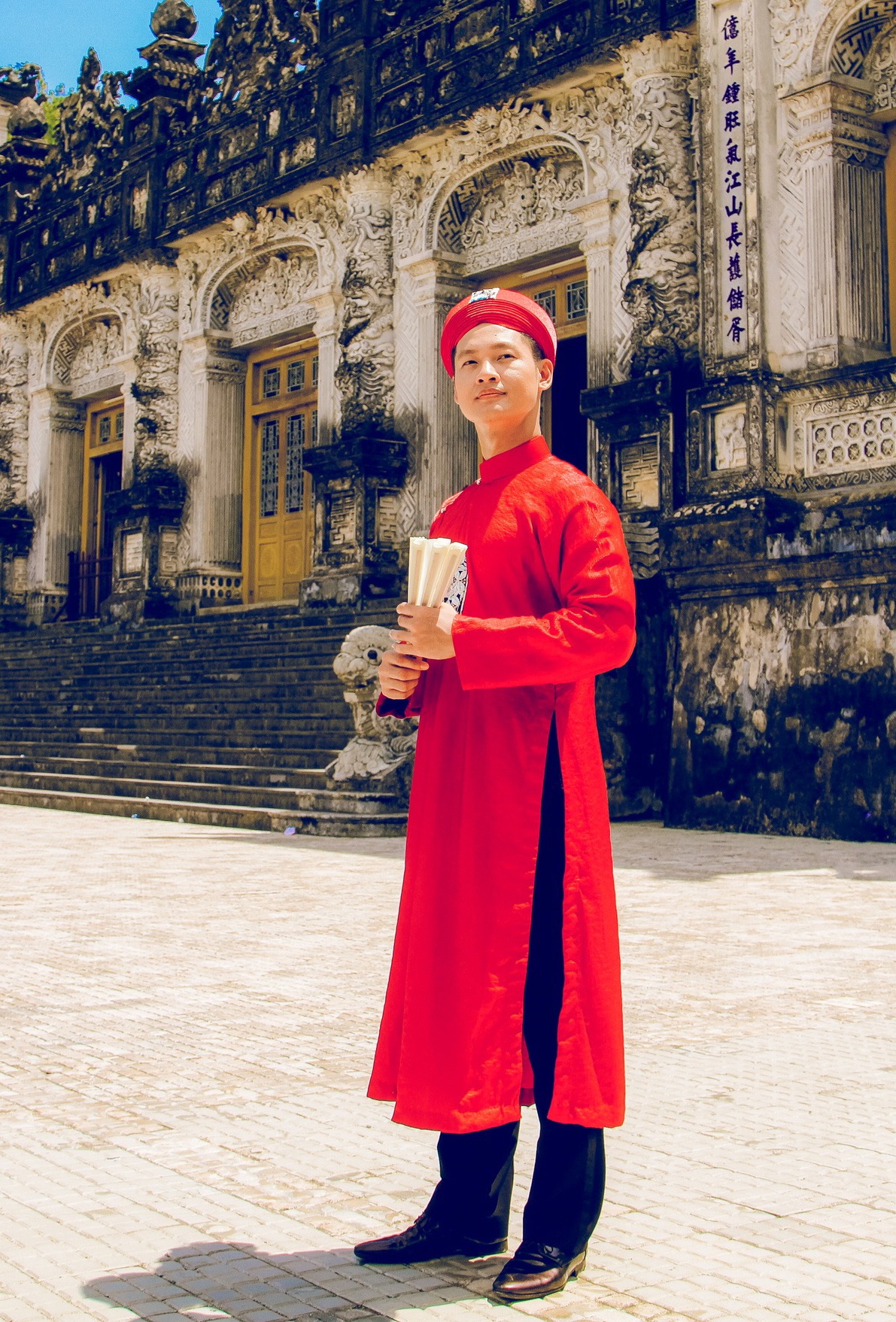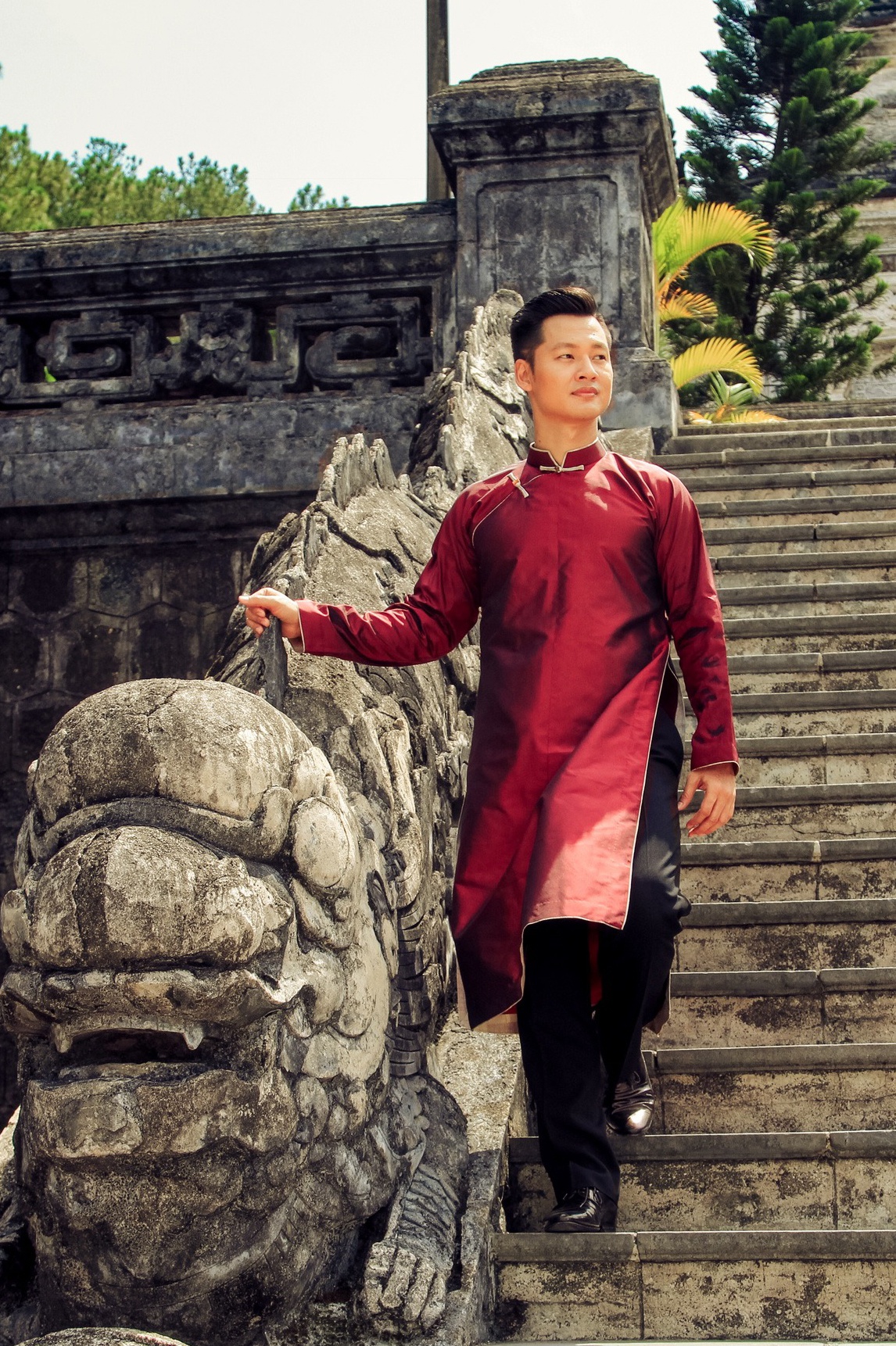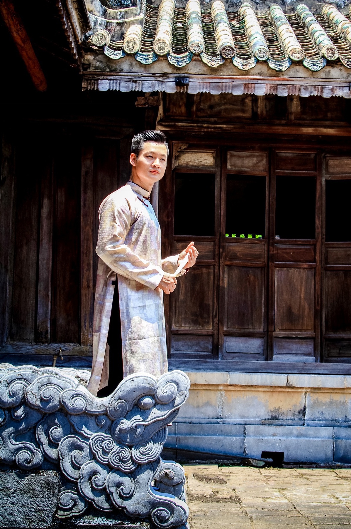 | Nam ca sĩ gốc An Giang chọn thiết kế áo dài cổ truyền để giới thiệu đến độc giả hình ảnh hoài cổ, phù hợp với định hướng phong cách của anh. |