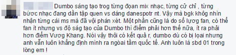 Trước liveshow 6, Dumbo từng chia sẻ sự không phục của mình dành cho giám khảo Trác Thúy Miêu. Điều này khiến không ít khán giả suy đoán đây là lý do khiến anh bị loại sớm.
