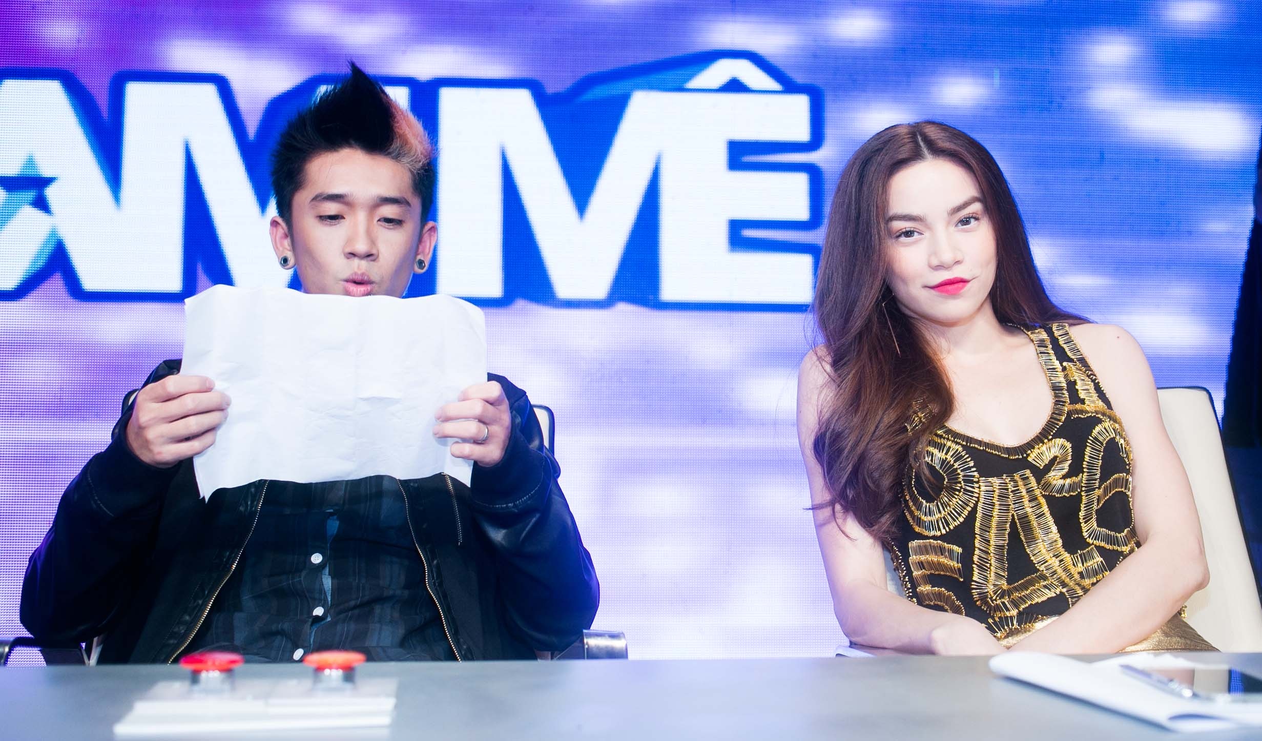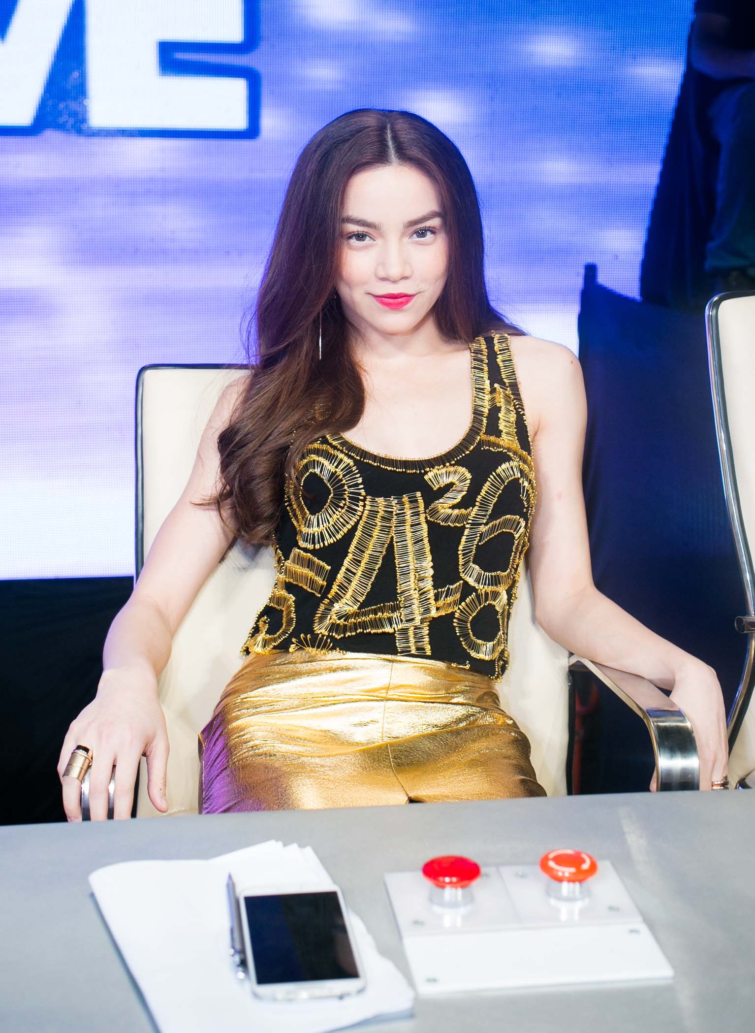 Hồ Ngọc Hà nổi bật trên ghế nóng với trang phục đơn giản nhưng cũng không kém phần cá tính. |