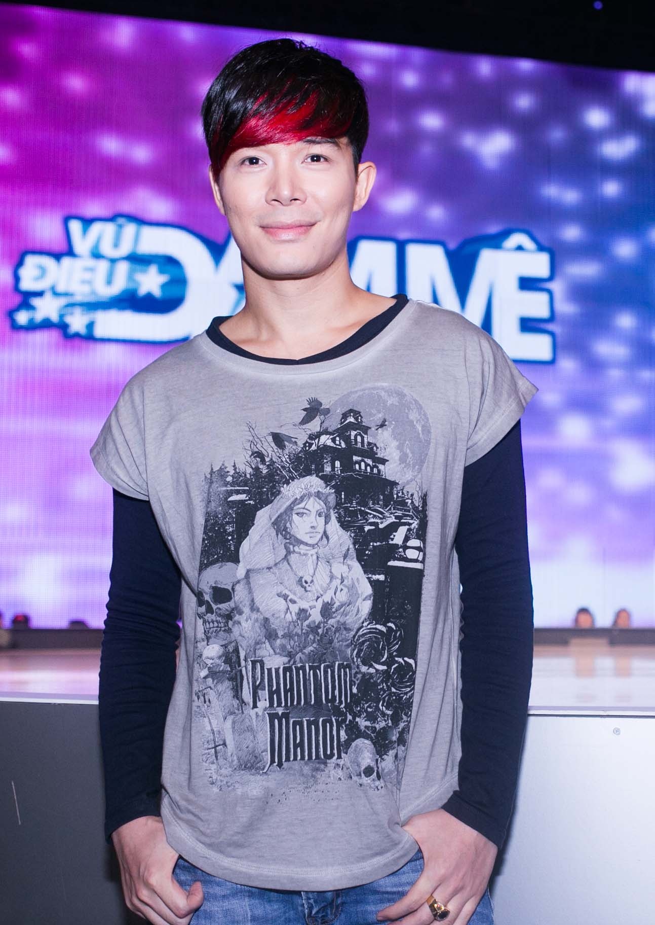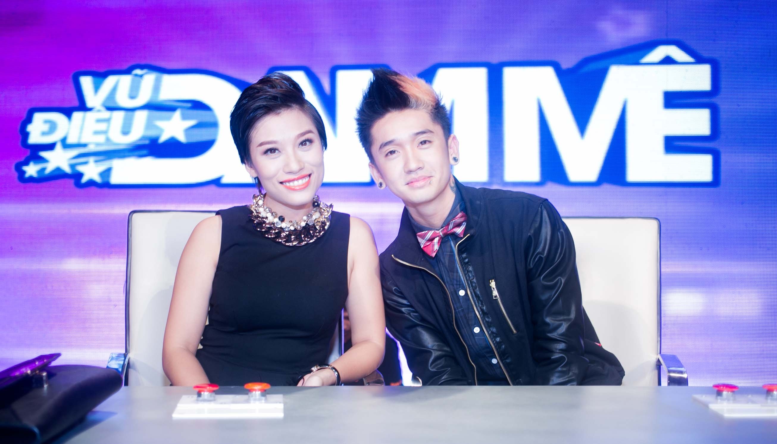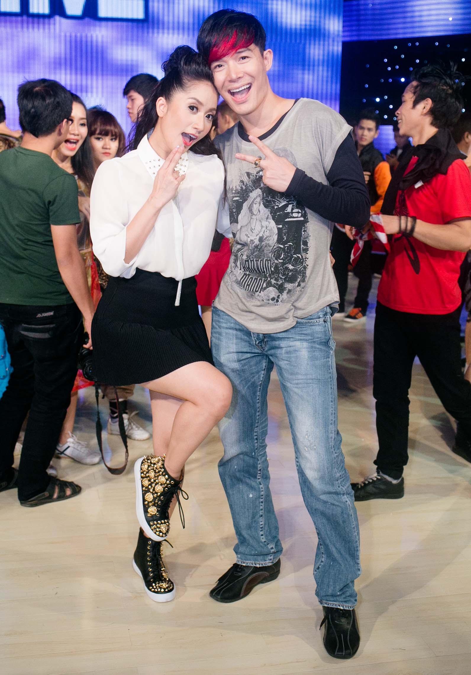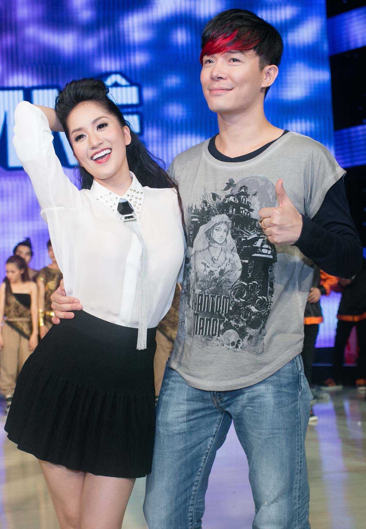 Anh chàng giám khảo sinh năm 1989 nhanh chóng 'nghiêm túc' khi chụp ảnh với biên đạo múa Trần Ly Ly. |