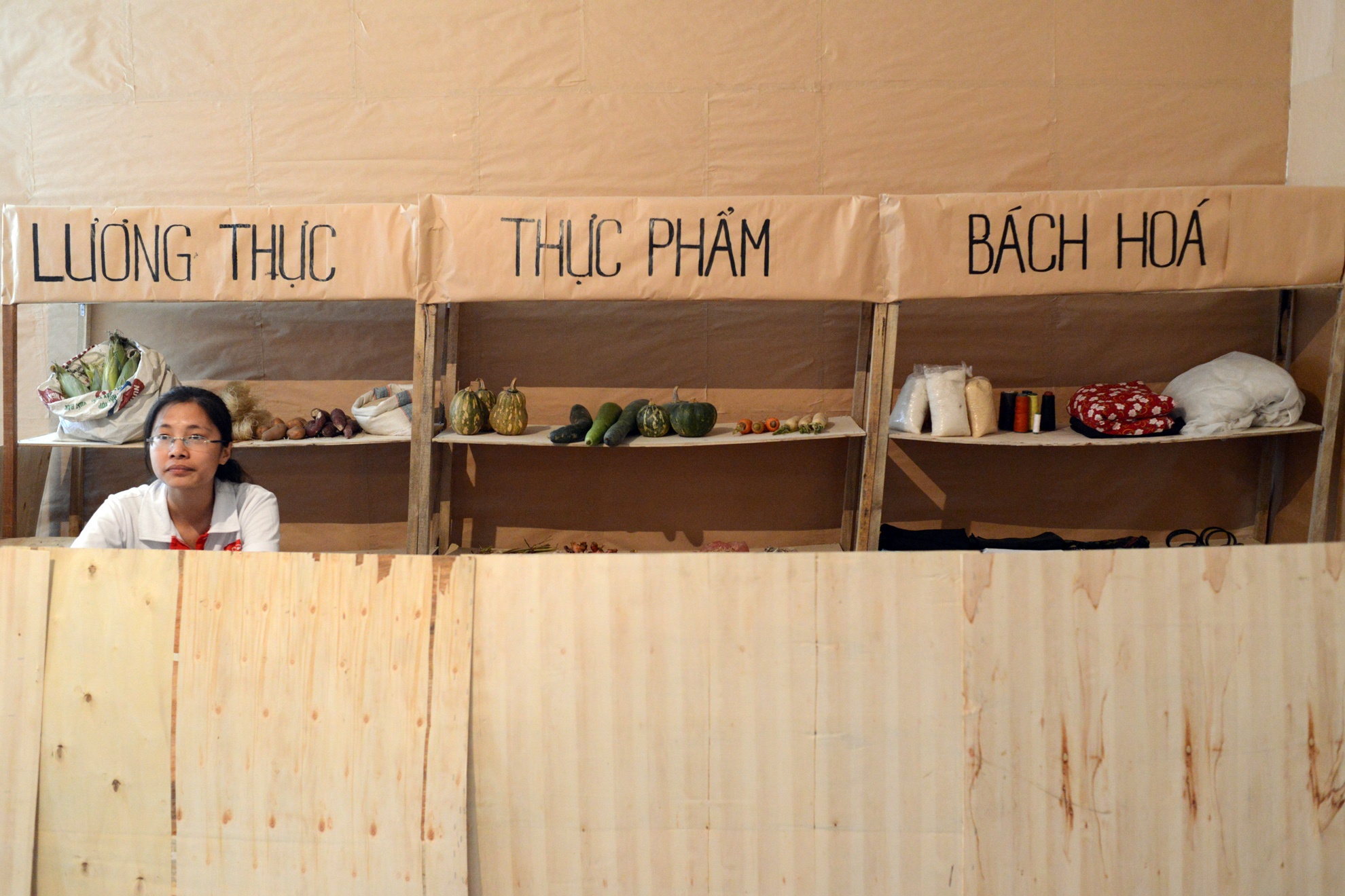 Ở đây cũng trưng bày khá nhiều vật dụng, hàng hóa tượng trưng cho thời kỳ trước đổi mới. Kho thực phẩm của gian hàng bao cấp chủ yếu là thực phẩm cá chõng, tép và một ít rau củ quả như hành, tỏi, cà rốt...