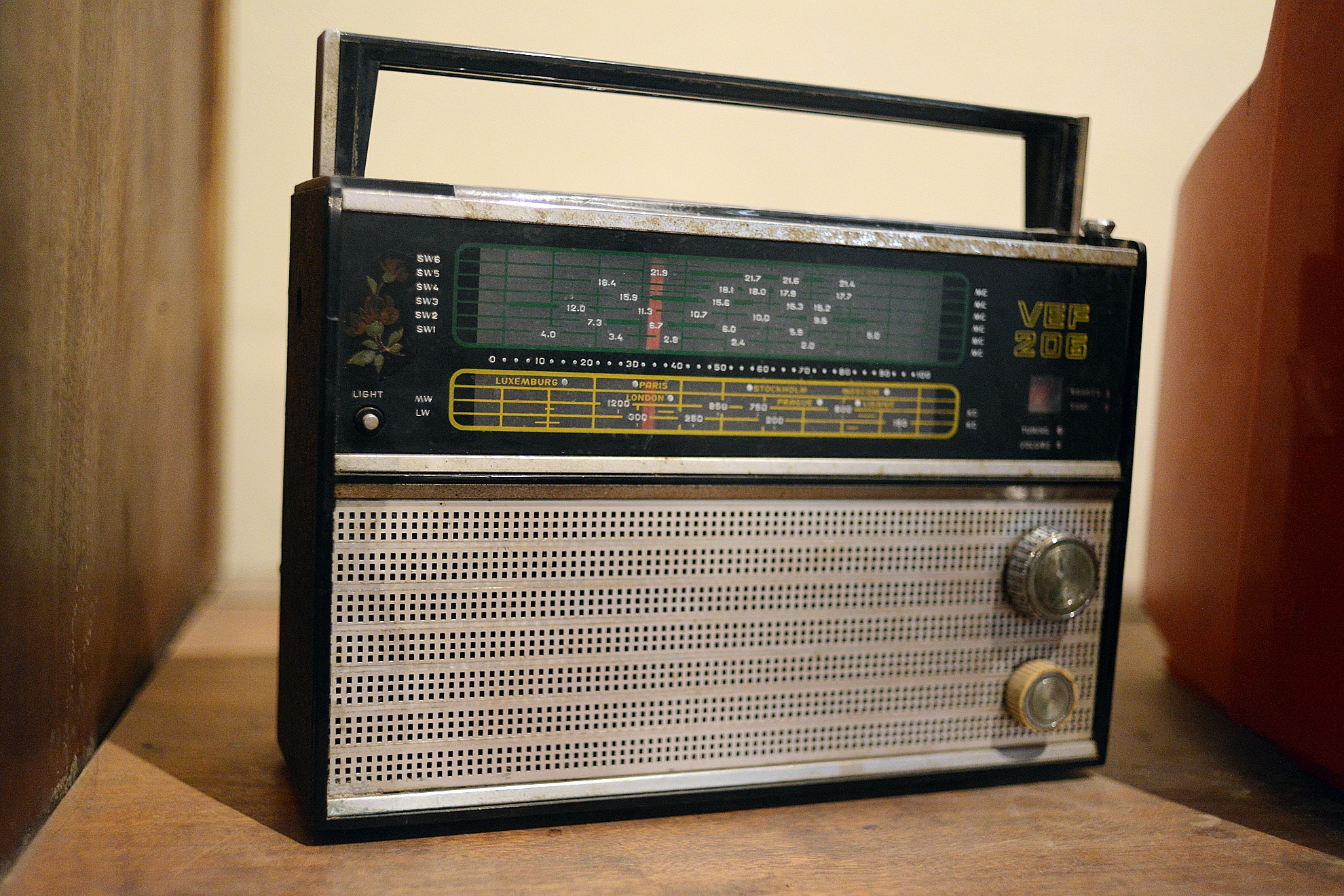 | Trên nóc tủ là chiếc tivi đen trắng Sanyo vỏ đỏ. Trước năm 1986, chỉ có những gia đình khá giả mới có thể mua được. |