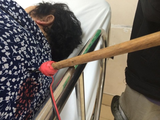 Sau khi đâm chủ nhà, tên cướp giật giỏ xách rồi bỏ chạy. Ngay sau đó, nạn nhân được hàng xóm đưa đi cấp cứu với mũi tên còn cắm vào lưng.
