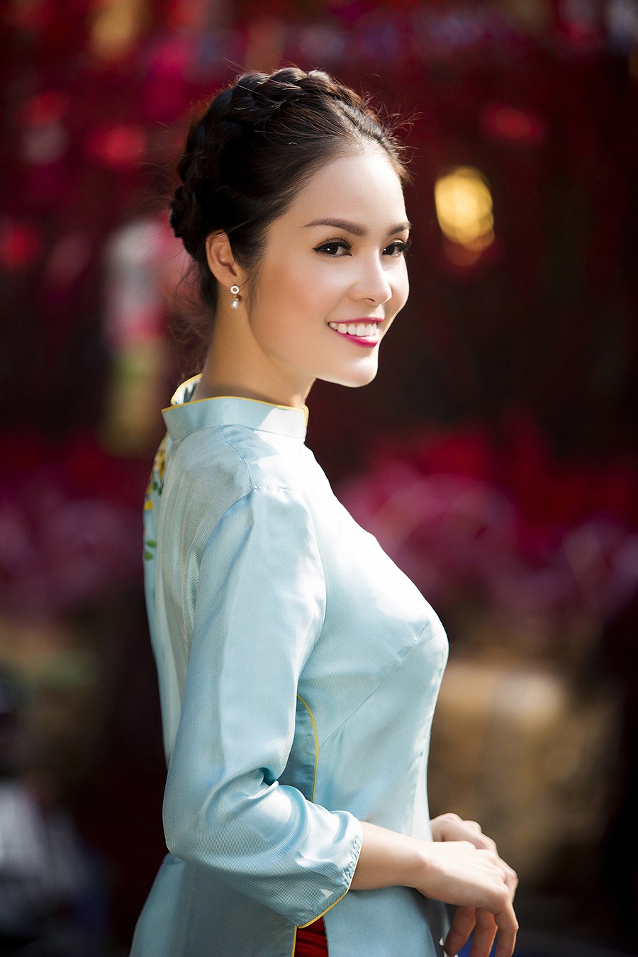 | Dương Cẩm Lynh cho biết, cô dành sự yêu thích đặc biệt cho áo dài, vì thế Tết Nguyên đán nào, diễn viên Oan trái nghĩa tình cũng thực hiện bộ ảnh chào xuân tặng khán giả. |