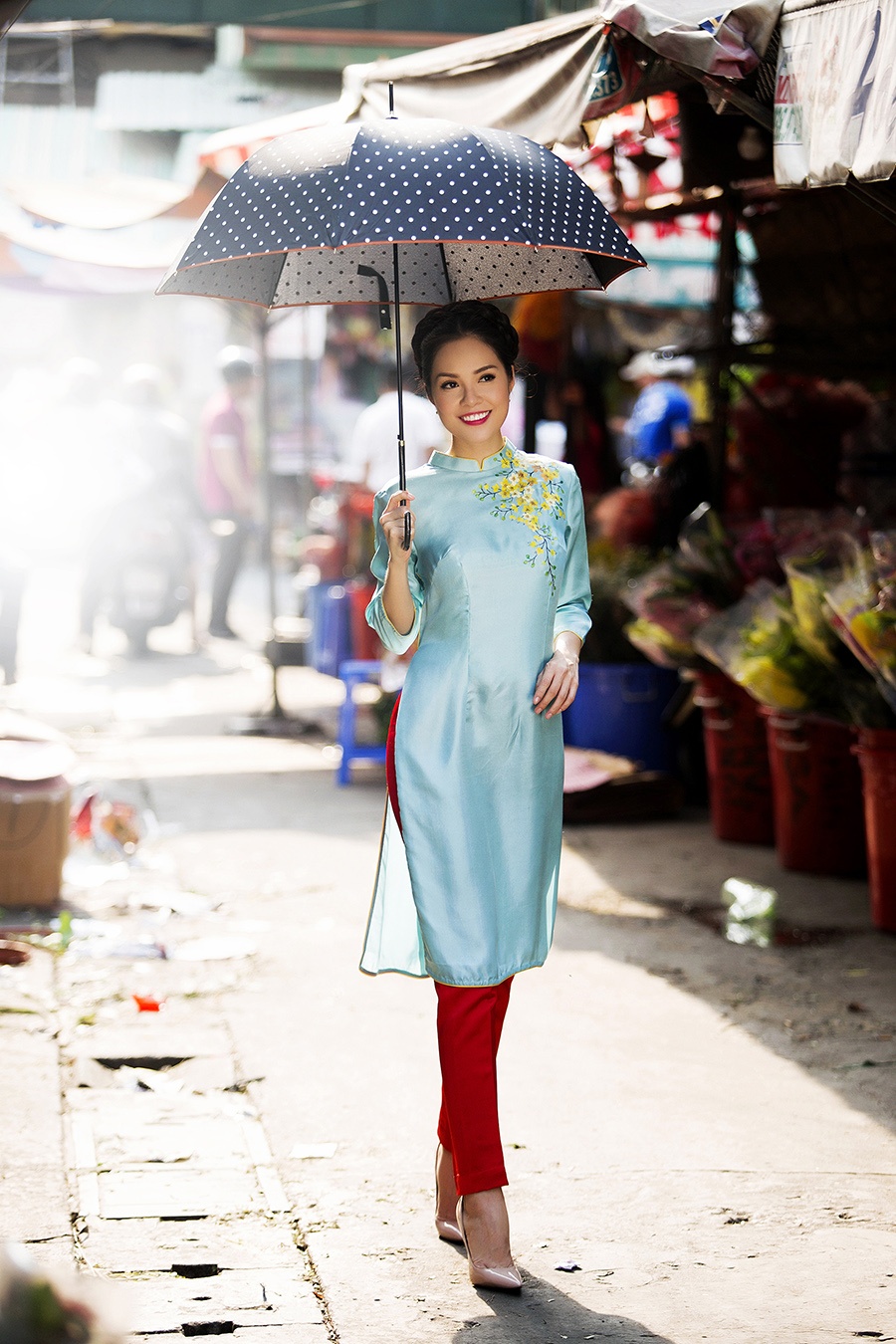 Dương Cẩm Lynh diện áo dài đi chợ Tết