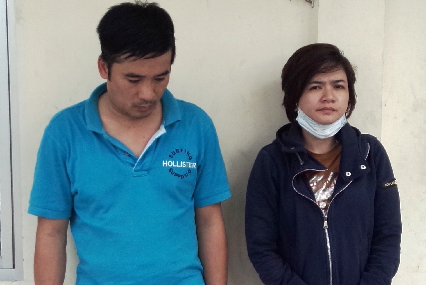 | Chân dung hai chủ tiệm đang bị công an bắt giữ. Ảnh: Khánh Trung. |