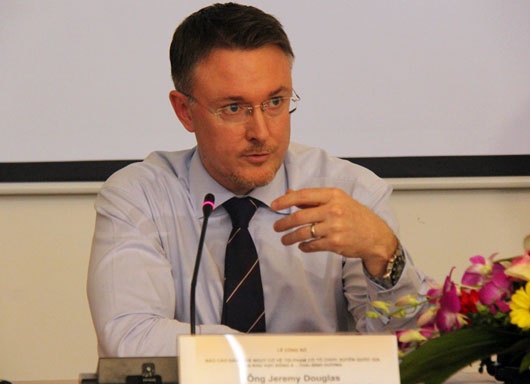 | Ông Jeremey Douglas trao đổi với báo giới chiều 14/8. Ảnh: Hà Anh. |
