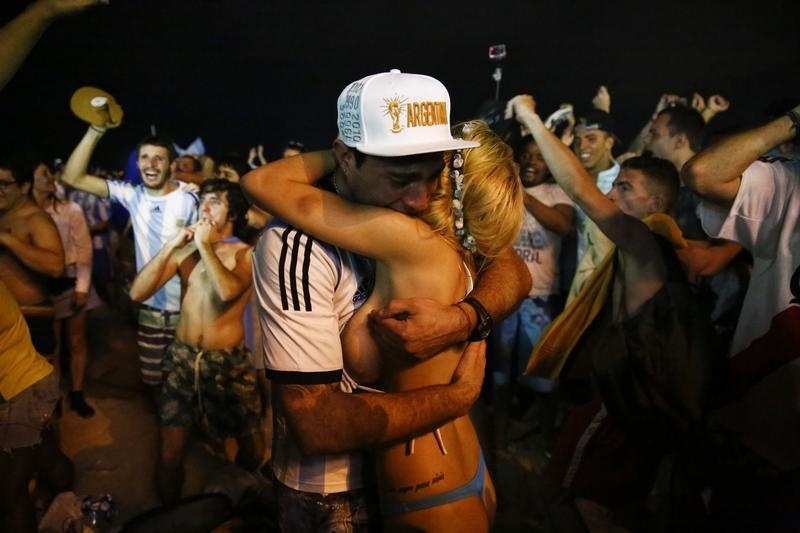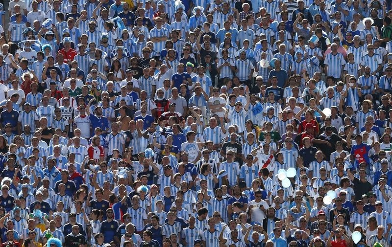 | Các CĐV Argentina ăn mừng chiến thắng lịch sử của đội nhà. |