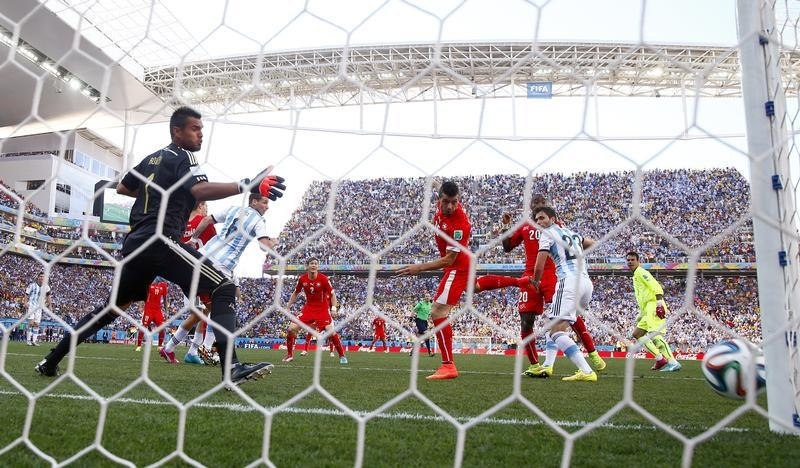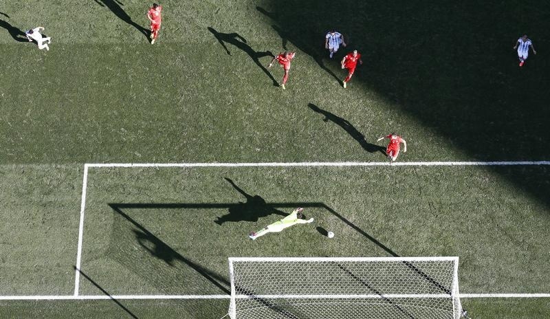 | Với thành tích đứng đầu bảng F, Argentina chạm trán Thụy Sỹ ở vòng 1/8. Trước lối chơi phòng ngự đầy khoa học của đoàn quân dưới quyền HLV Ottmar Hitzfeld, Albiceleste đã gặp vô vàn khó khăn trong việc tìm đường vào khung thành của Benaglio. Kết thúc 90 phút chính thức không có bàn thắng nào được ghi, cả hai đội buộc phải bước vào thi đấu hiệp phụ. |
