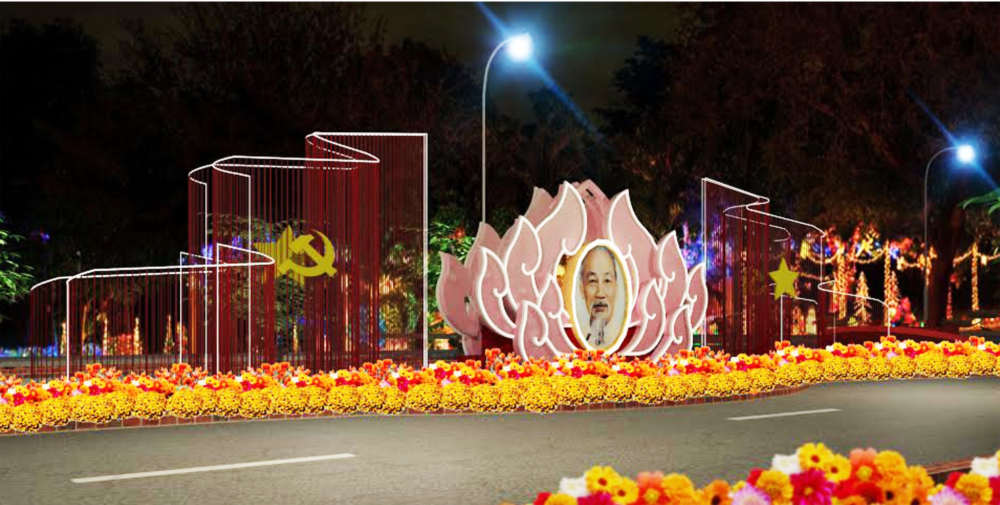 | "Đài sen nhớ Bác" trong không gian đường hoa thanh niên. |