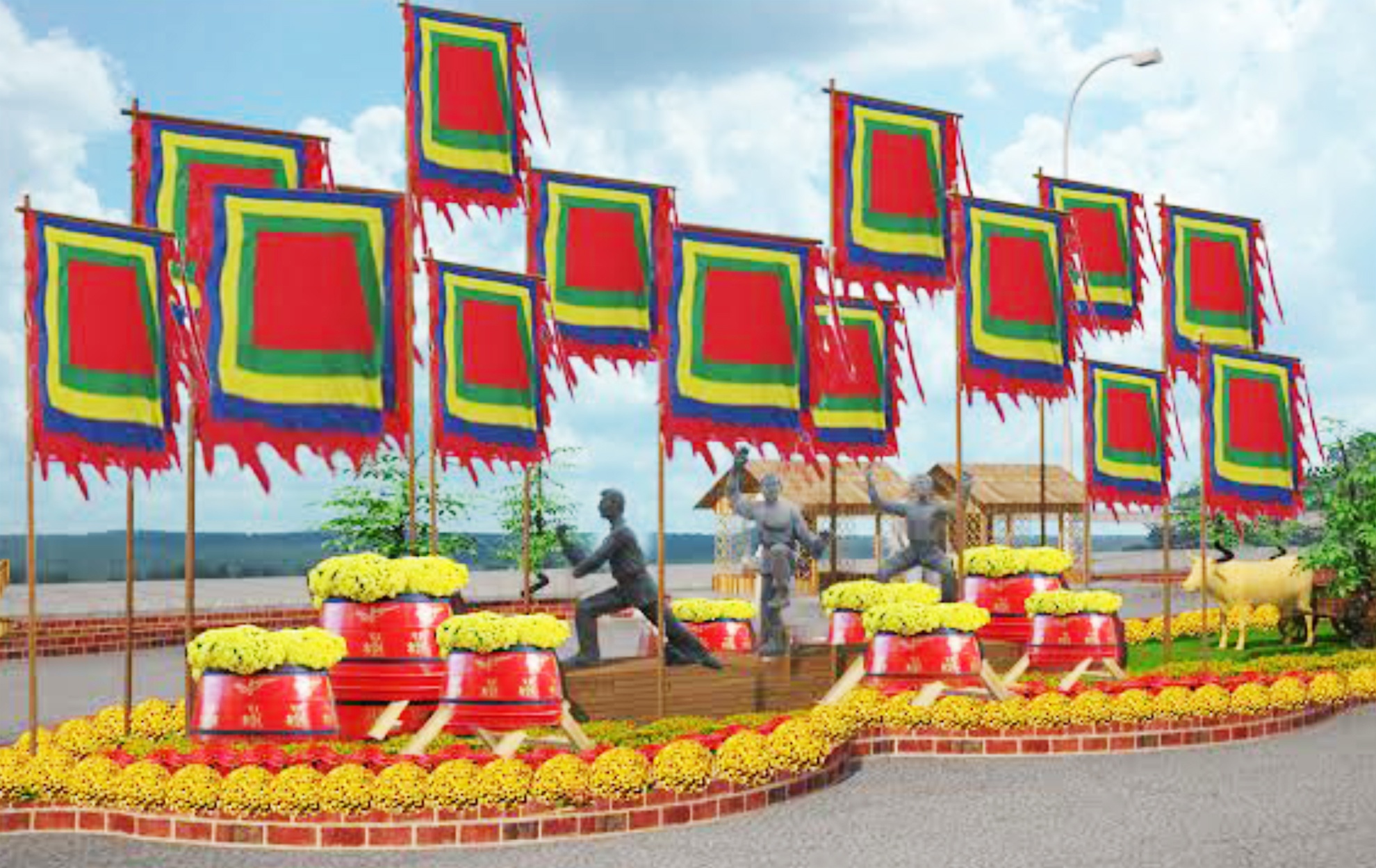 | Bên cạnh chủ đề biển đảo, đường hoa thanh niên còn có tiểu cảnh "Hào khí đất võ" với hình ảnh 3 anh em nhà Tây Sơn dựng cờ khởi nghĩa. Ban tổ chức hi vọng, hào khí đất võ sẽ lan tỏa và khơi gợi lòng tự hào quê hương. |
