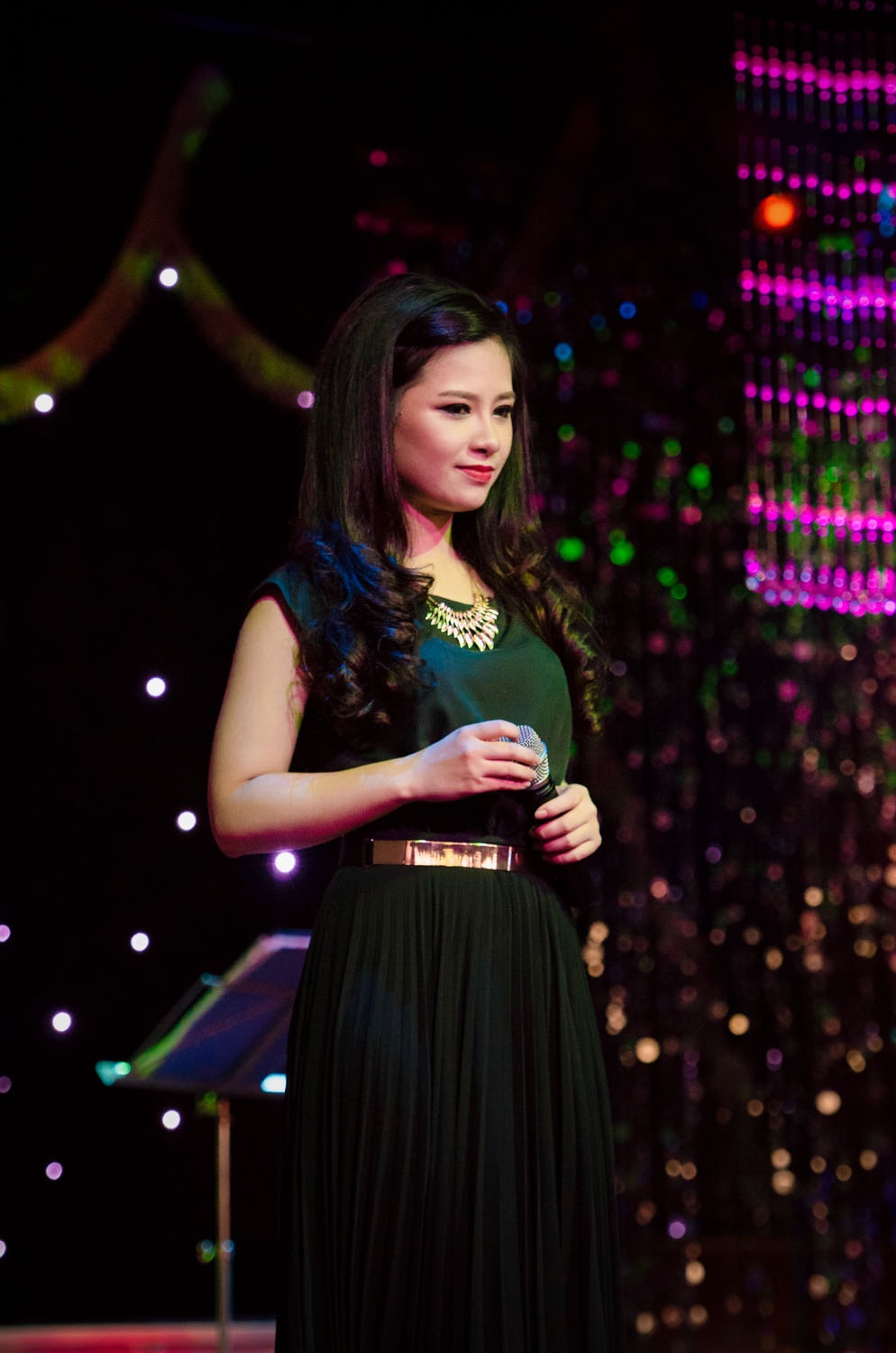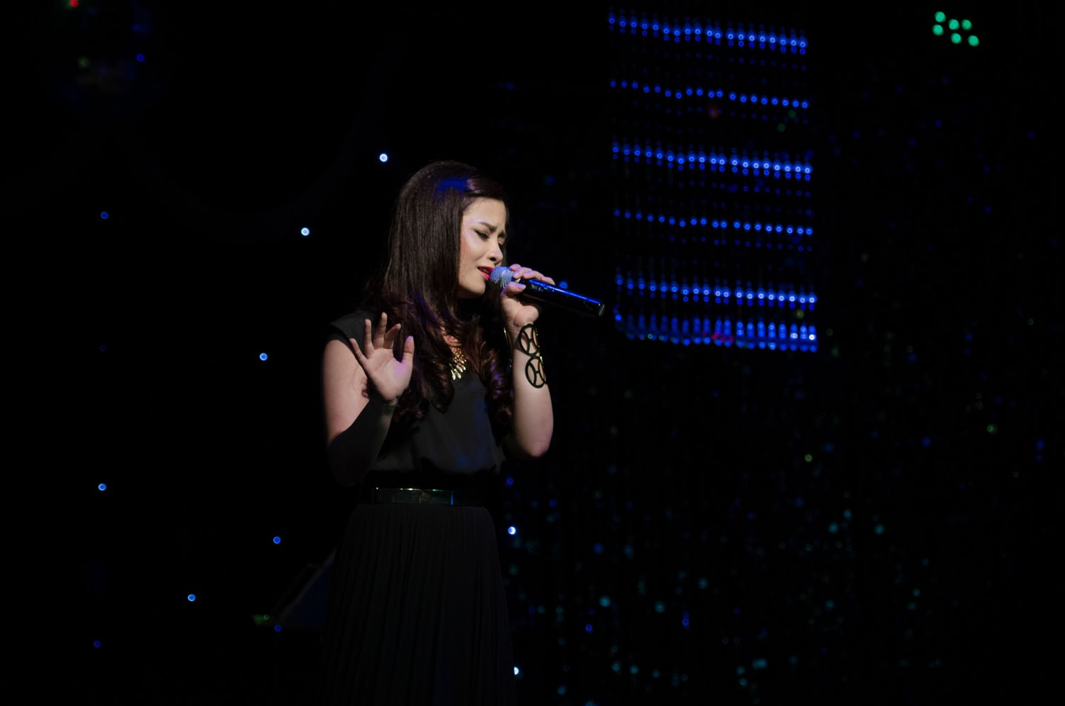 | Giọng ca sinh năm 1991 khoe giọng hát live với báo giới và người hâm mộ. Những quãng cao của cô khiến những ai có mặt đều phải trầm trồ. |