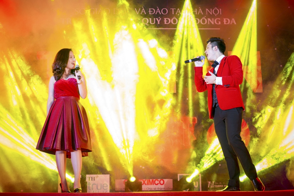 | Cô còn song ca Chiếc khăn piêu cùng bạn trai Hà Anh. Trường Lê Quý Đôn cũng là nơi Hà Anh theo học những năm cấp 3. |