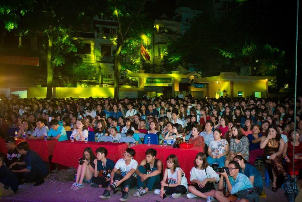| Màn trình diễn của cặp đôi nhận được sự cổ vũ nhiệt tình từ các bạn học sinh của trường. |