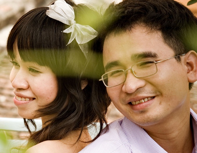 Một hôm ở Sài Gòn, đúng ngày 14/2. Mình đang ở nhà dì của mình thì có... khách đến tìm. Hóa ra bạn ấy đến chơi. Hai đứa ngồi “tám” với nhau cả buổi về những chuyện ngày xửa ngày xưa. Rồi đến khi vào ĐH, mình học Trường ĐH Kinh tế - luật (ĐH Quốc gia TP.HCM), còn bạn học Trường ĐH Y dược TP.HCM. Dự định học thêm một văn bằng, mình đăng ký học tại ĐH Mở. Vào lớp lại thấy... bạn ấy. Hỏi mới biết “tư tưởng lớn” gặp nhau khi cả hai có ý định lấy thêm bằng quản trị kinh doanh. Cứ giờ giải lao hai đứa lại “chí chóe”, bạn ấy chọc mình là “bại tướng” của Olympia.