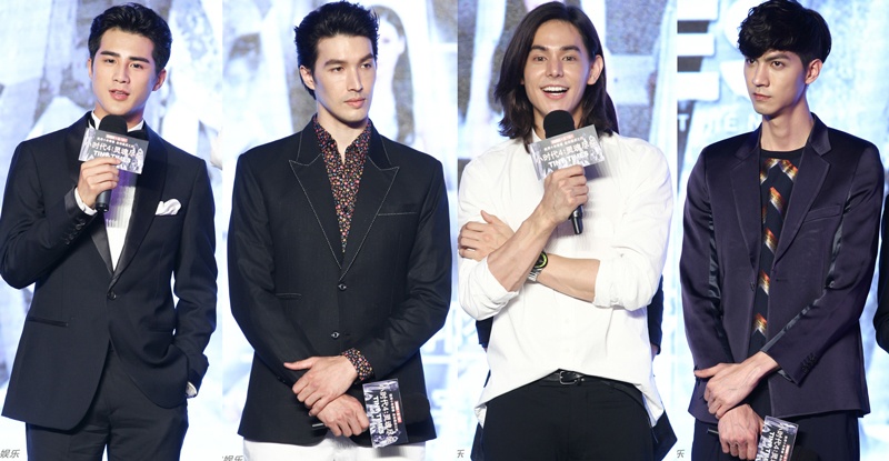 | Dàn diễn viên nam điển trai của Tiểu thời đại 4. Từ trái sang: Khương Triều, Cẩm Vinh, Lee Hyun Jae, Nhậm Ngôn Khải. Do scandal bị bắt vì ma túy hồi tháng 9/2014, vai diễn của Kha Chấn Đông đã bị cắt khỏi Tiểu thời đại 4. Đây cũng được cho là lý do khiến bộ phim phải lùi thời điểm ra mắt từ tháng 2 xuống tháng 7. |