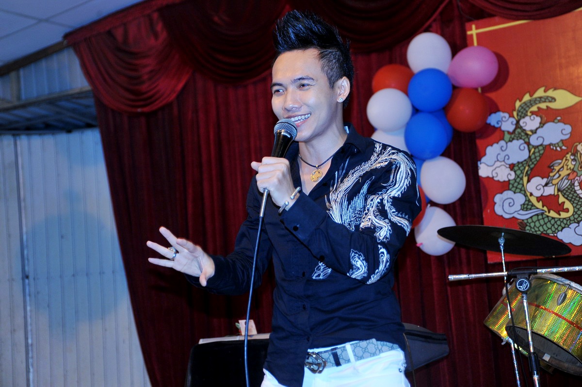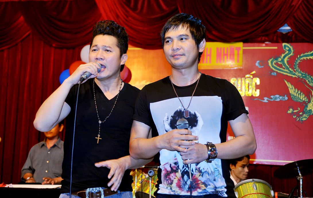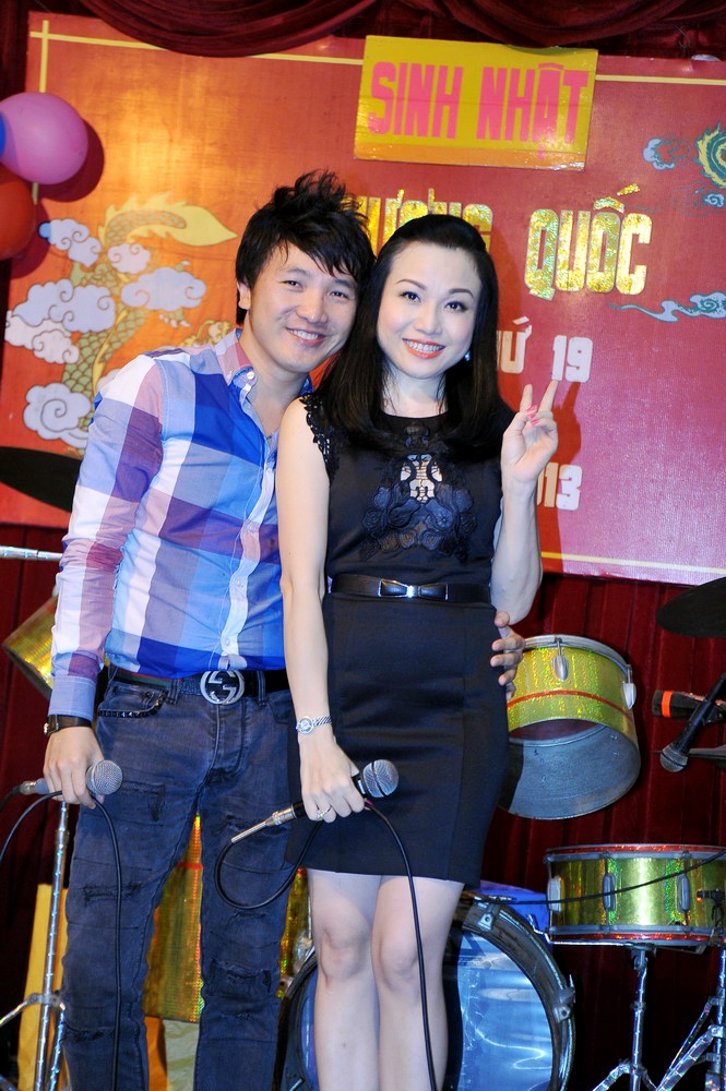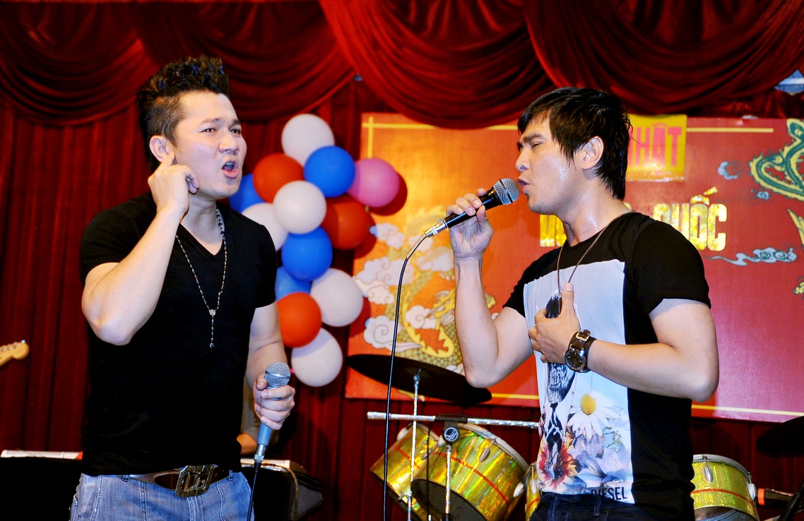 | Cả hai thể hiện ca khúc trữ tình gửi tặng chủ nhân của buổi tiệc sinh nhật và đồng nghiệp. |