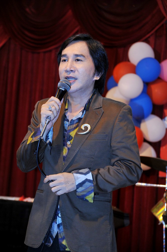 | Nghệ sĩ cải lương Kim Tử Long sau vụ lùm xùm "bị bắt trên chiếu bạc" cũng xuất hiệp chia vui với đồng nghiệp. |