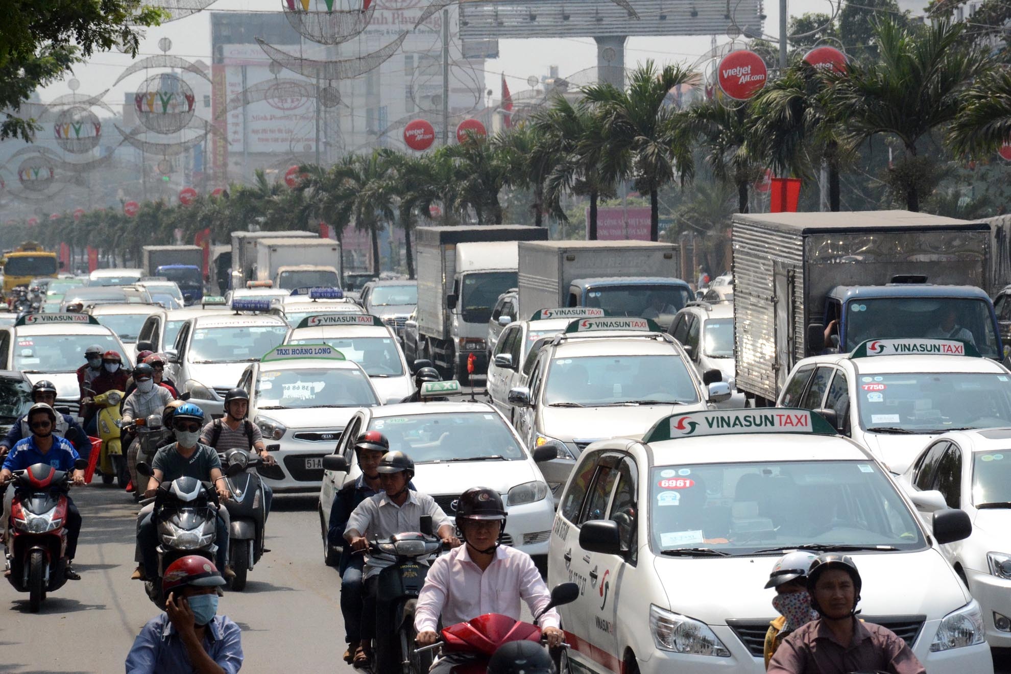 Đường ra sân bay Tân Sơn Nhất đông nghịt vào giữa trưa