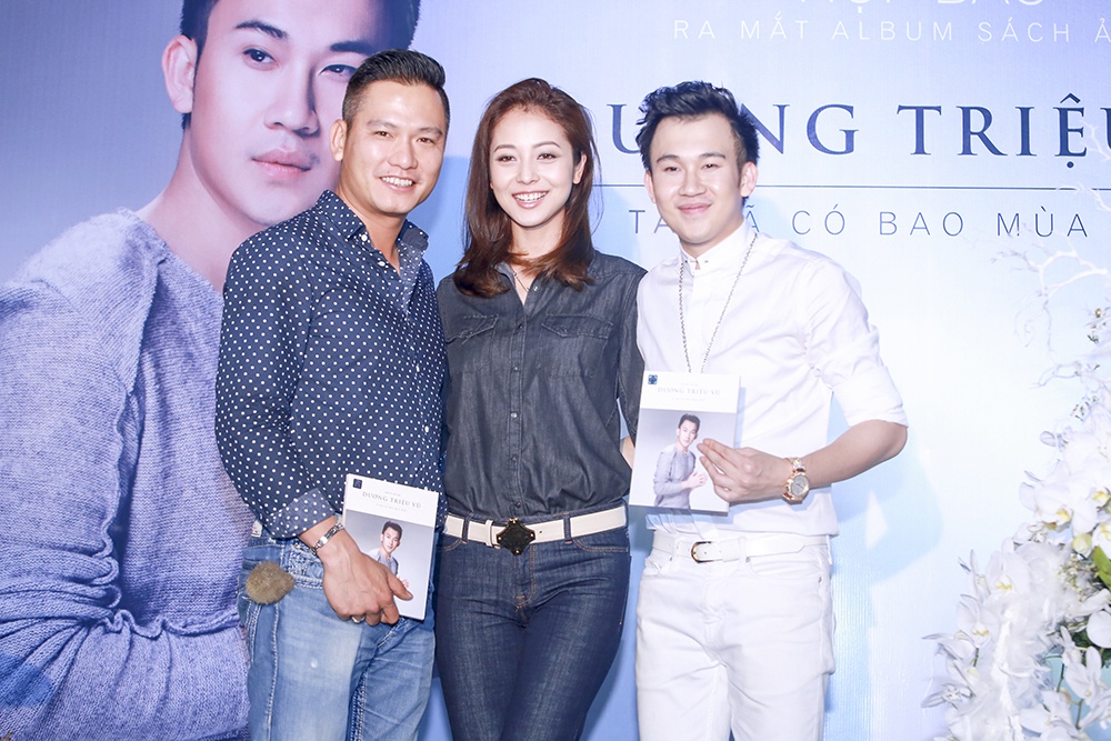 | Vợ chồng Jennifer Phạm tới chúc mừng Dương Triệu Vũ ra album mới. |