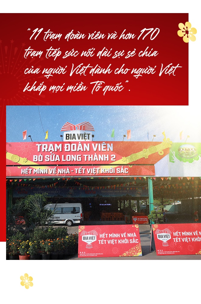 Đồng cảm với những khó khăn người dân phải trải qua trên hành trình về quê, Bia Việt đã khởi động chiến dịch chiến dịch “Hết mình về nhà, Tết Việt khởi sắc” với nhiều hoạt động ý nghĩa và nổi bật. Trạm đoàn viên Bia Việt là một trong số đó. Thương hiệu đã thiết lập 11 trạm đoàn viên và hơn 170 trạm tiếp sức trên các trục đường chính xuất phát từ Thành phố Hồ Chí Minh và Hà Nội. Đường về nhà mỗi người mỗi ngả nhưng đều có thể hội ngộ tại các trạm đoàn viên Bia Việt để được nhận những sự hỗ trợ thiết thực từ nhãn hàng.