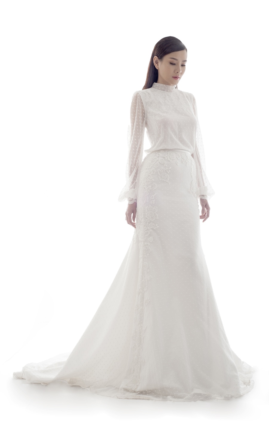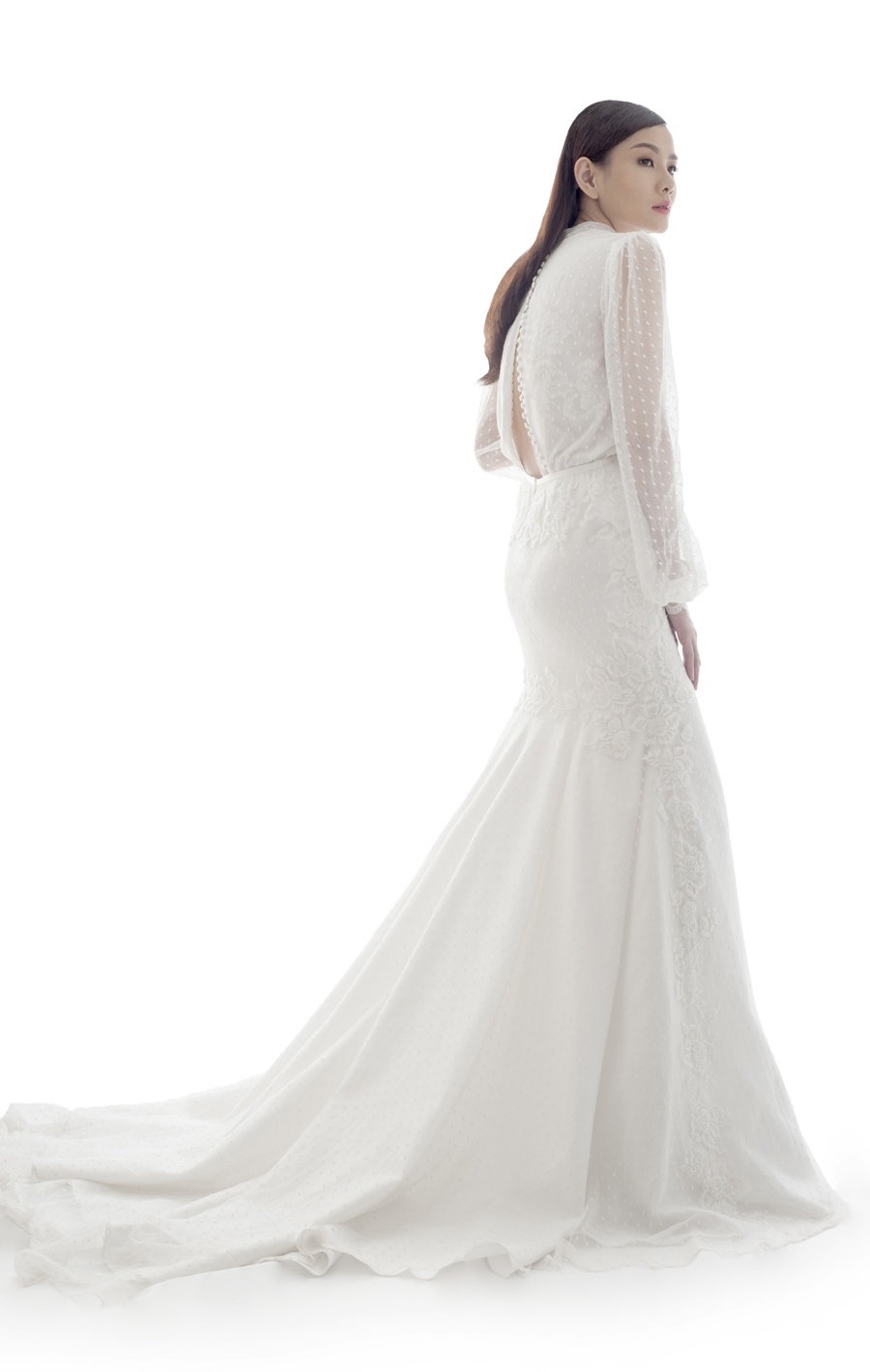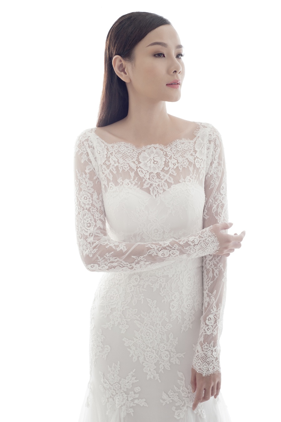 | Bộ sưu tập mới của NTK Trương Thanh Hải giới thiệu mẫu đầm voan ren nhẹ nhàng, tinh khiết được Dương Yến Ngọc thể hiện thành công. |