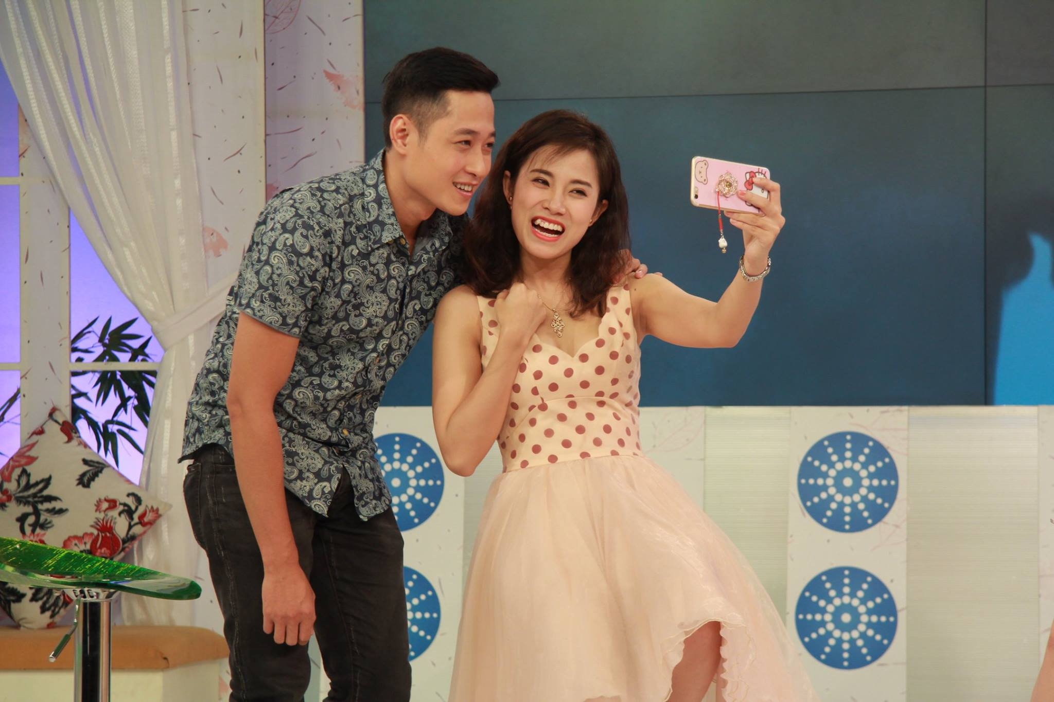 Trong phần chụp ảnh 5 giây, Quỳnh Hoa còn thơm lên má bạn diễn. Cả hai nhí nhảnh chụp ảnh "selfie" khi chương trình kết thúc.