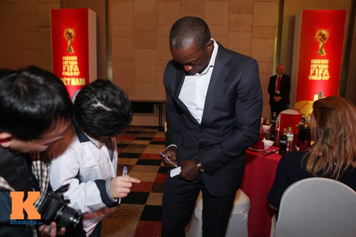 | Dwight Yorke thân thiện với người hâm mộ Việt Nam tại Hà Nội. |