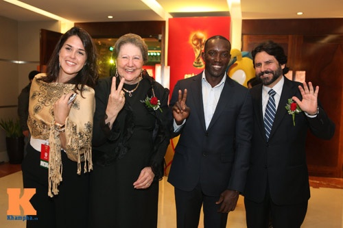 Dwight Yorke chụp ảnh lưu niệm với các quan chức đại sứ quán Brazil tại Việt Nam. Họ có mặt để giới thiệu với người hâm mộ về đất nước Brazil mến khách chuẩn bị chào đón VCK World Cup 2014. Cựu TTK liên đoàn Bóng đá Việt Nam (VFF), ông Trần Quốc Tuấn giao lưu với Dwight Yorke .