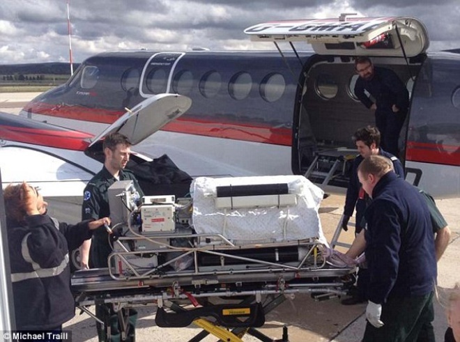 | Một ngày sau khi sinh và còn rất yếu, Skye Edwards đã phải bay với độ cao 273 km tới bệnh viện tại Glasgow. |