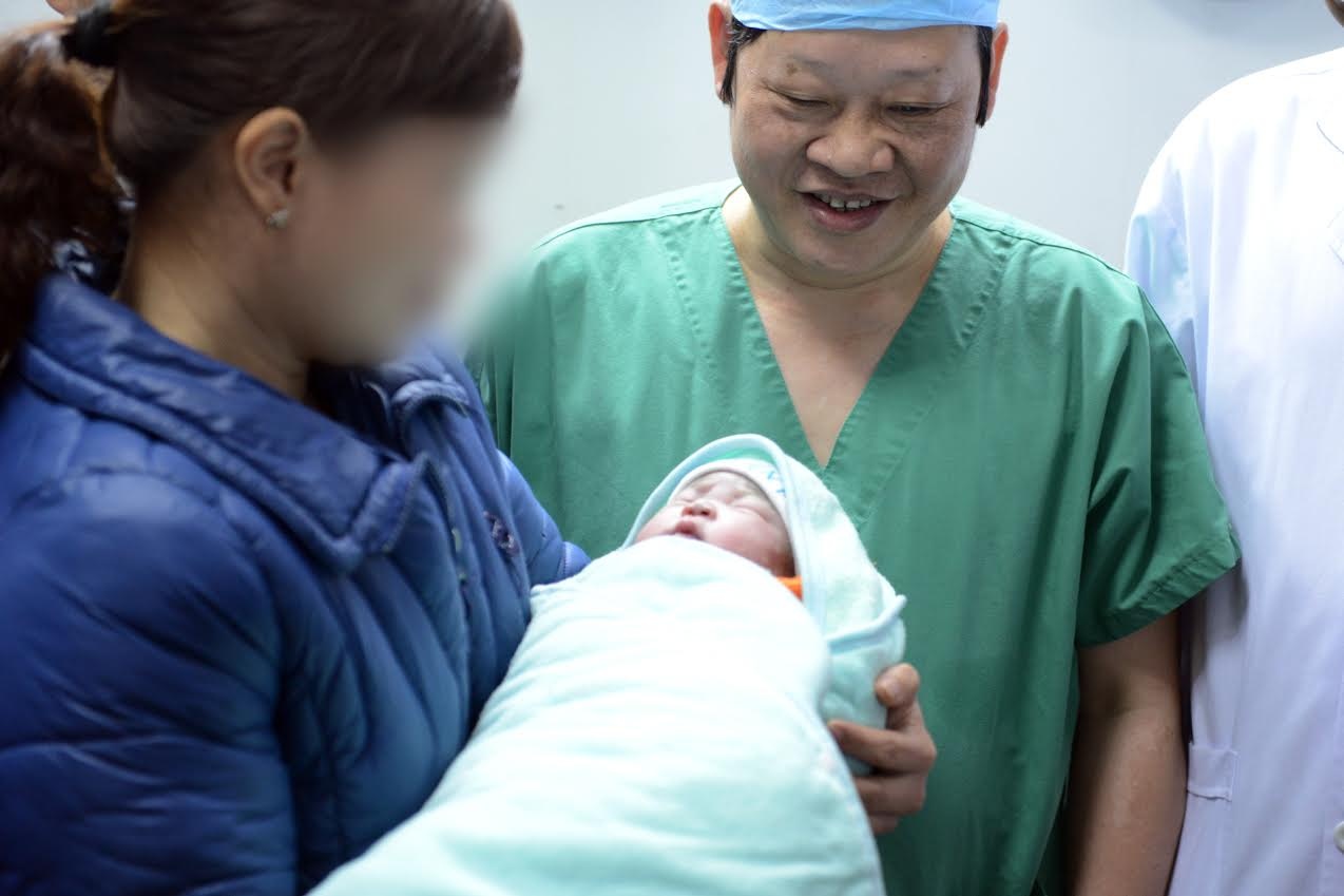 GS. TS Nguyễn Viết Tiến - người trực tiếp mổ trao em bé mới chào đời cho người mẹ. |