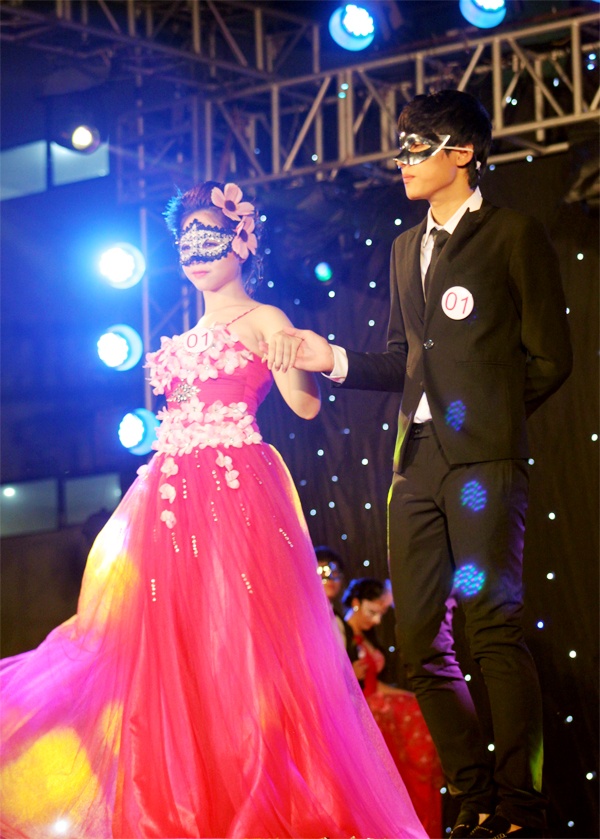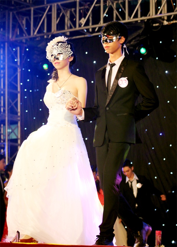 Cặp đôi Minh Thành (11 Lý 1) - Minh Thu (11 Hóa 2) trong hóa trang hoàng tử và công chúa.