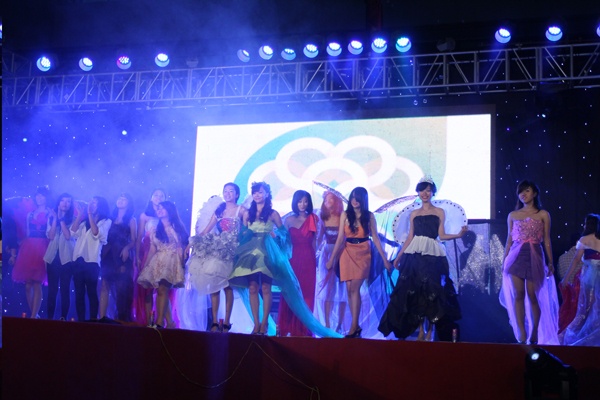 Các cô gái của khối chuyên Văn đã biểu diễn những bộ trang phục tự thiết kế độc đáo, đầy màu sắc.