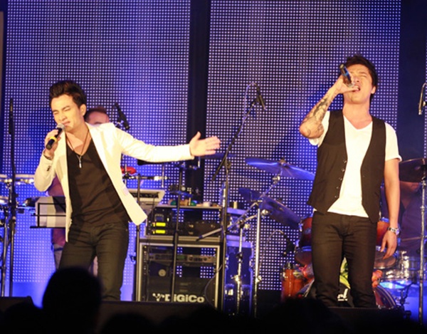 Quang Mẫn và Tuấn Hưng thân thiết từ sân khấu đến đời thường. |