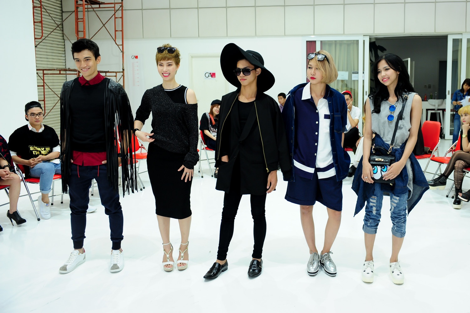 Chàng Việt kiều đến từ nước Úc - Lê Trần Quang Vũ giữ hình ảnh an toàn với phong cách áo thun sọc kẻ trẻ trung, hiện đại. Sau phần giao lưu với hai icon thời trang đình đám, 27 thí sinh bước vào thử thách đầu tiên của vòng bán kết, diễn ra vào buổi chiều cùng ngày. Ở phần thi này, các tín đồ thời trang thể hiện 5 phong cách khác nhau, đó là Menswear, Denim, Rock-chic, Ánh kim và Print on Print.