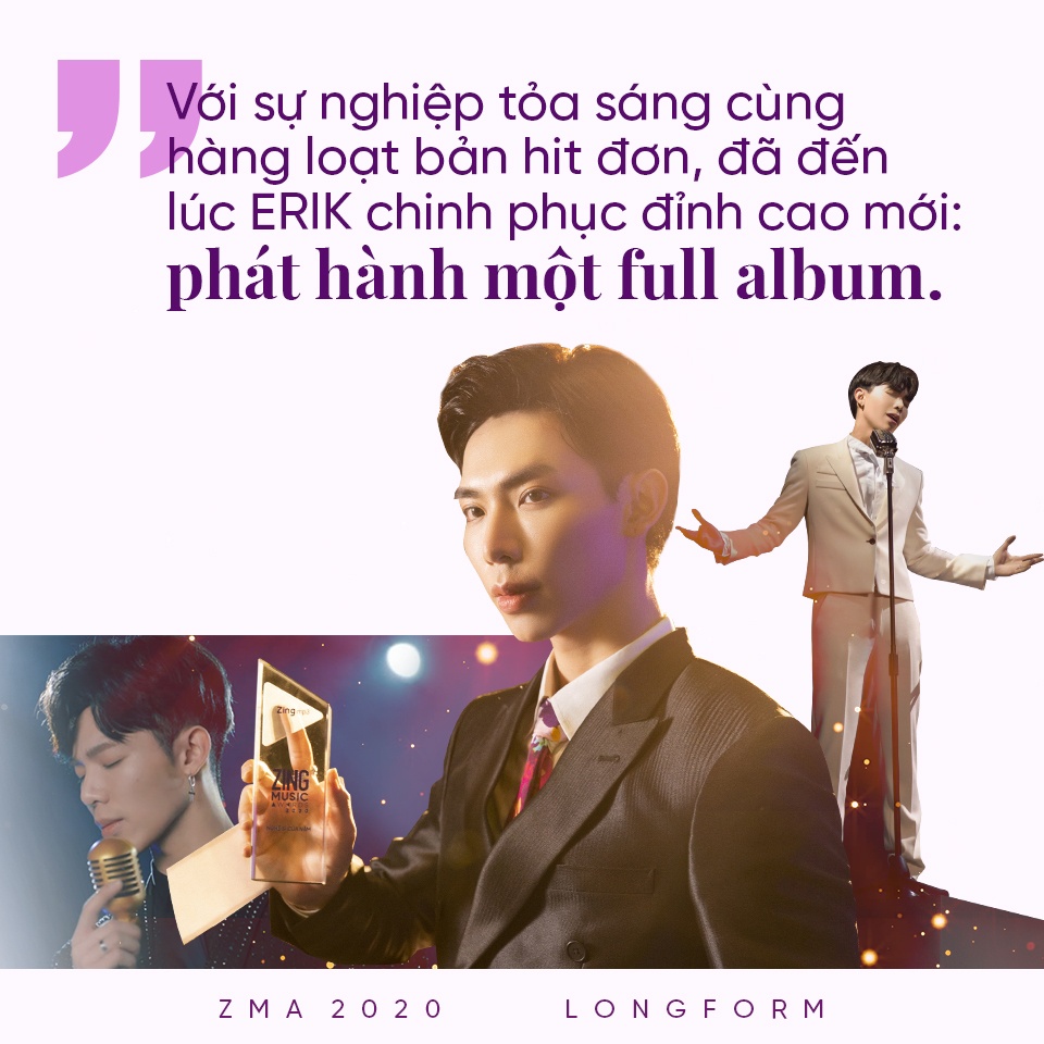 Và đúng như những đắn đo được tỏ bày trên sân khấu nhận giải, đã đến lúc Erik nên bước đến chinh phục một đỉnh cao mới. Với sự nghiệp 5 năm tỏa sáng qua hàng loạt bản hit đơn công phá top đầu #zingchart, năm 2021 và cả các năm sau này, full album cần là mục tiêu tiên quyết mà giọng ca 1997 phải hướng đến. Một full album để nam ca sĩ xây dựng chân dung âm nhạc rõ nét, đa dạng gửi đến khán giả và giới chuyên môn.