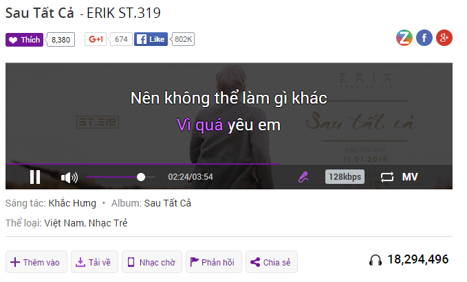 Giới trẻ yêu thích chất giọng của Erik và bài hát của Khắc Việt. |