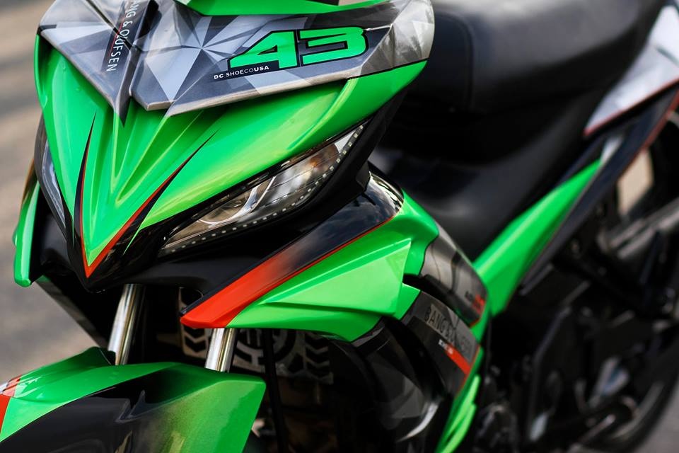 | Chiếc Exciter 135 thuộc sở hữu của một biker ở Sài Gòn. Toàn bộ dàn áo zin được xả ra, chế mủ góc cạnh và sơn màu sơn mới. |