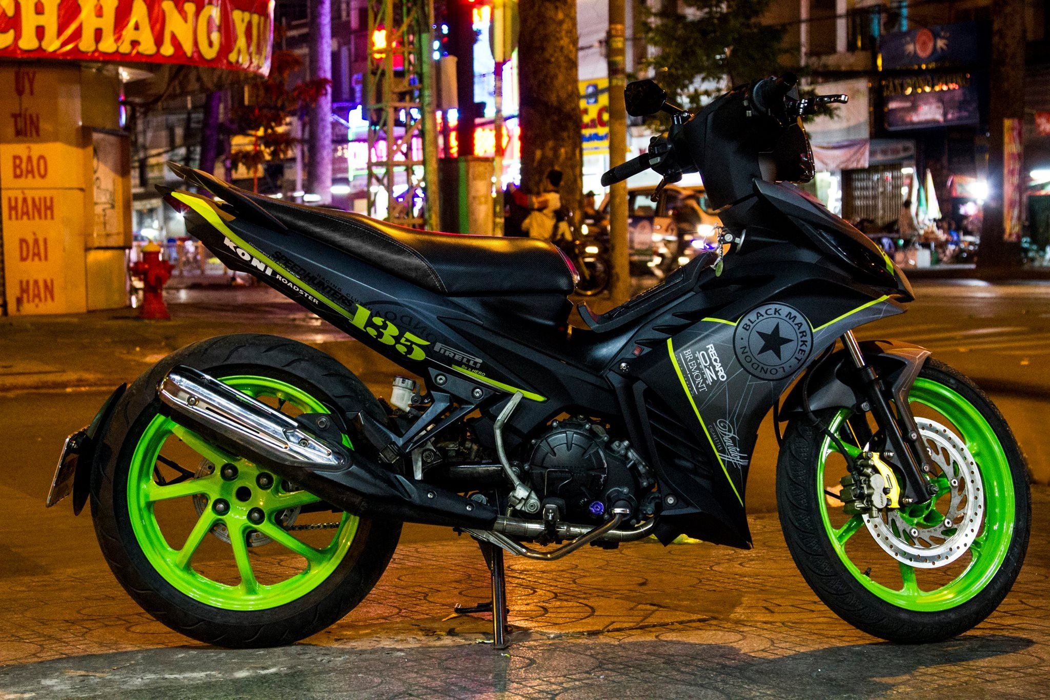 Chiếc Exciter 135 nguyên bản đời 2011 có màu xanh GP. Chủ xe là một biker ở Sài Gòn, sở hữu bộ sưu tập nhiều xe nhỏ được độ bắt mắt như SH, Exciter, Air Blade... Ở chiếc côn tay 135 phân khối này, gói độ mà anh lựa chọn là sự kết hợp lên gắp N, vuốt đuôi đèn kiểu Exciter 150, nâng phuộc sau cao, sơn tem đấu dàn áo và sơn mâm một màu nổi bật.