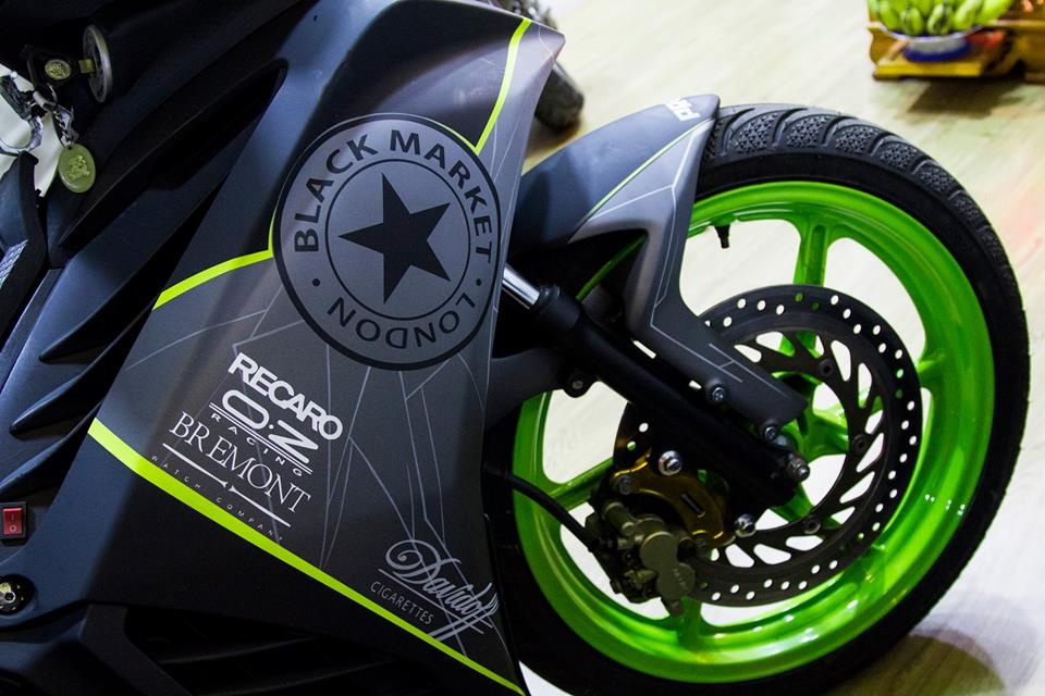 Theo chia sẻ của những người thợ độ, họ đã sơn tem đấu dàn vỏ theo phong cách bụi bặm, với tông màu chủ đạo là xám Lamborghini, nhấn nhá bằng những đường nét màu vàng chanh trên nền hoạ tiết và logo của 2 thương hiệu Black Market và Davidoff. Ý tưởng này bắt nguồn từ một mẫu xe hơi độ của nước ngoài.