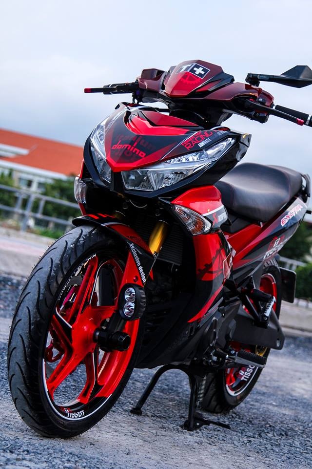 | Chiếc Exciter 150 nguyên bản màu đỏ đen, thuộc sở hữu của một người chơi xe sinh năm 1965 ở Sài Gòn. Anh này đam mê xe nhưng không tham gia hội nhóm biker nào. |