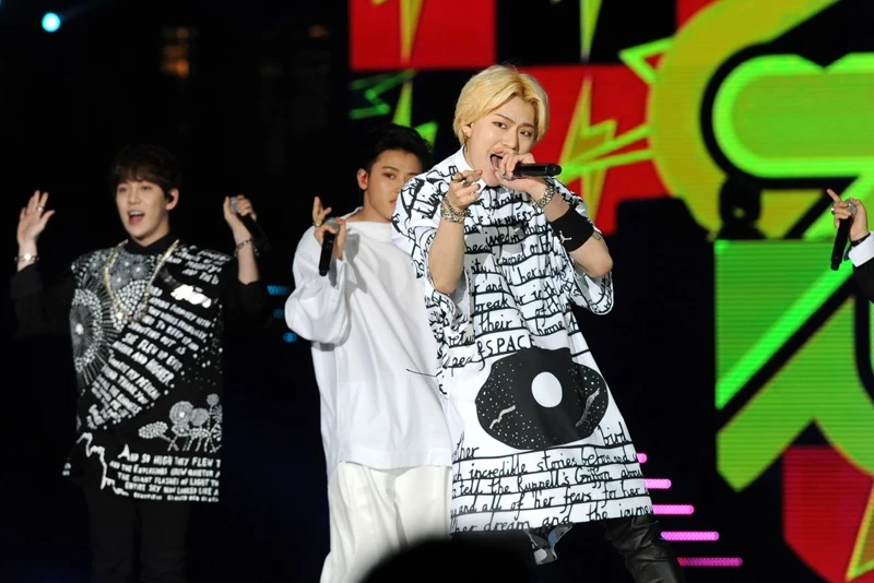 | Taemin - em út của nhóm SHINee mê hoặc fan với ca khúc Danger. Anh chàng còn táo bạo phanh áo, khiến khán giả đứng dưới càng thêm phấn khích. |