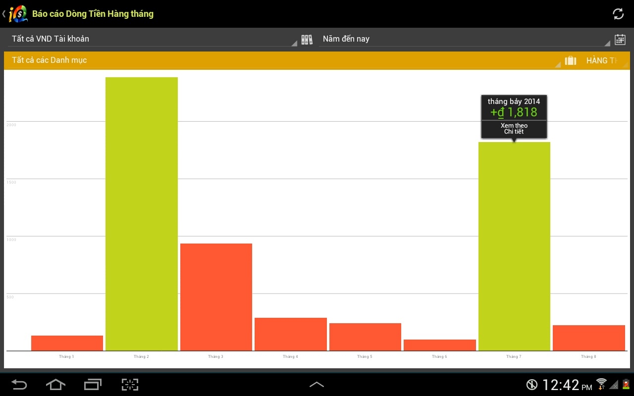 Ứng dụng có thể giúp bạn quản lý chi tiêu cả ngắn hạn và dài hạn với tính năng báo cáo hữu ích của ứng dụng này. Về cơ bản, tính năng này cho phép bạn theo dõi chi phí, thu nhập, dòng tiền, và số dư theo mốc thời gian hàng ngày, hàng tháng, hoặc hàng năm.