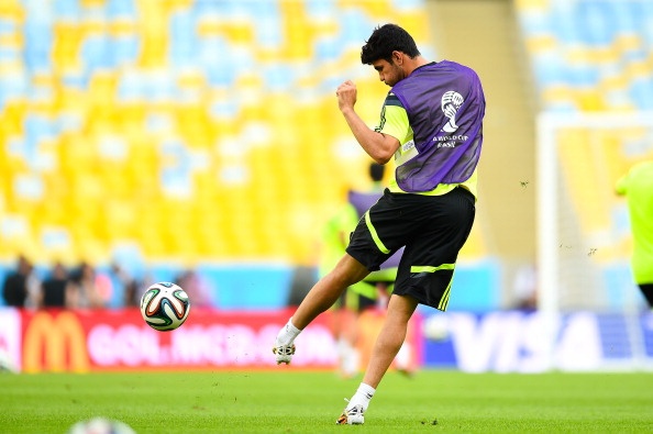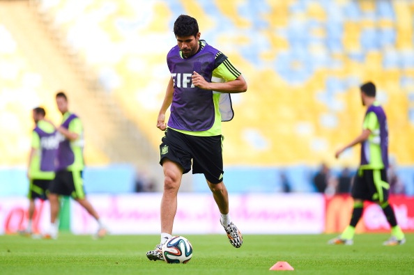 | Diego Costa tích cực tập luyện nhằm có thể ghi bàn vào lưới Chile. |