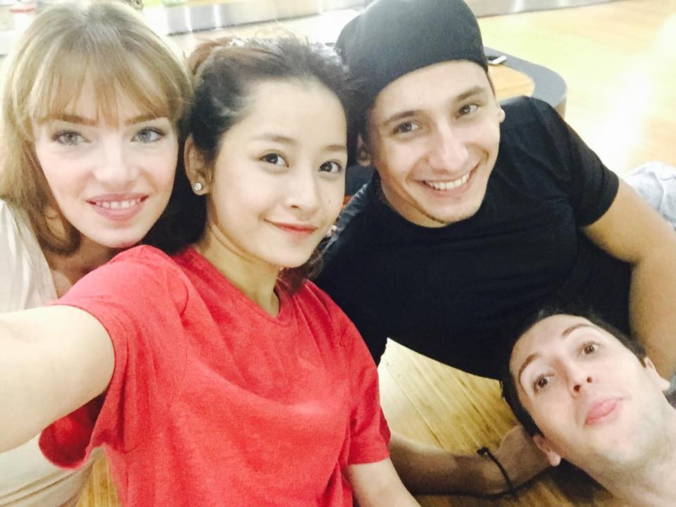 | Cô nhắng nhít chụp ảnh cùng các vũ công nước ngoài. |