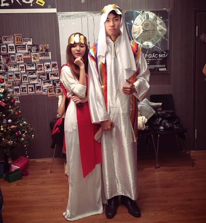 | Ngày 8/12 trên trang cá nhân của An Japan và Vương Anh đã chia sẻ hình ảnh cả hai trong trang phục ngộ nghĩnh cùng chia sẻ: "Chả làm gì nên tội mà cũng trục xuất mình". Hình ảnh tạo hình hài hước này nhận được gần 10.000 lượt like (thích) từ cộng đồng mạng. Vừa qua, cặp đôi này cũng bị dính nghi án tình cảm, nhưng cả hai chưa tiếng xác nhận điều này. |