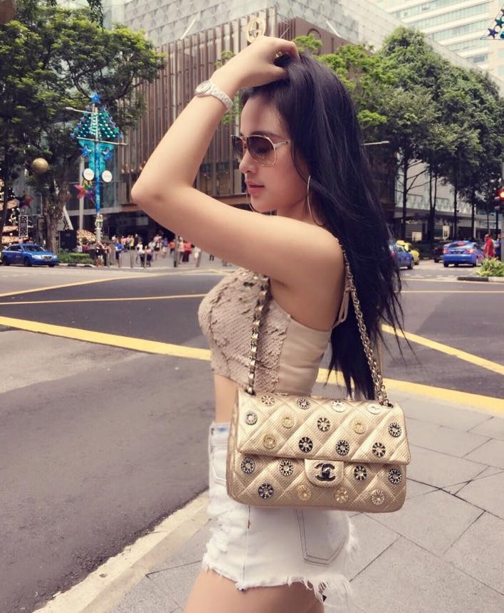 | Huyền Baby khoa thân hình thon gọn trên đường phố Singapore. Các hình ảnh của cô chia sẻ trên Facebook cá nhân nhận được nhiều lượt like (thích) của mọi người. |