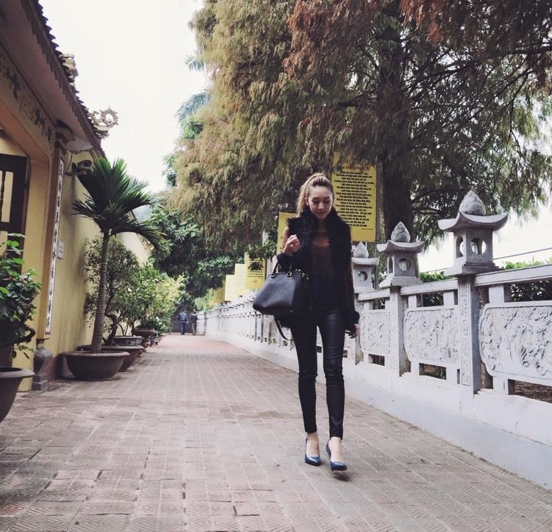 | Hot girl Emily đi chùa để tìm sự bình yên. Hình ảnh được cô đăng tải ngày 27/12, kèm với chia sẻ: "Nơi tôi tìm thấy bình yên trong tâm trí. Ngày thứ 7 nhẹ nhàng và thảnh thơi. Hà nội cứ lạnh lạnh thế này nghe ca khúc Mùa xa nhau lại càng thấm". |