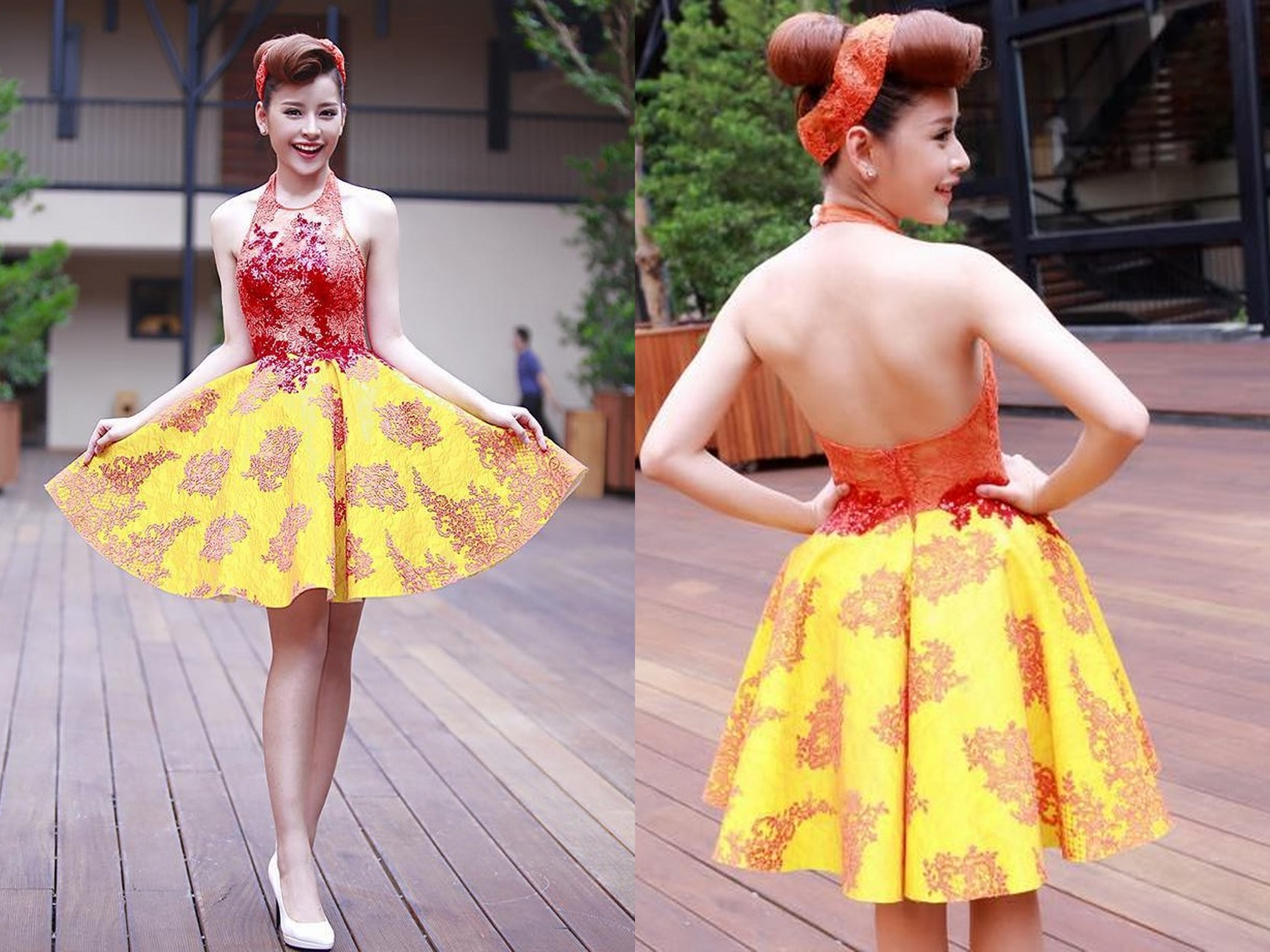 | Trong buổi họp báo chương trình Bước nhảy hoàn vũ 2015 vào ngày 24/12, Chi Pu diện trang phục trẻ trung với chiếc váy bắt mắt khiến mọi người chú ý. |